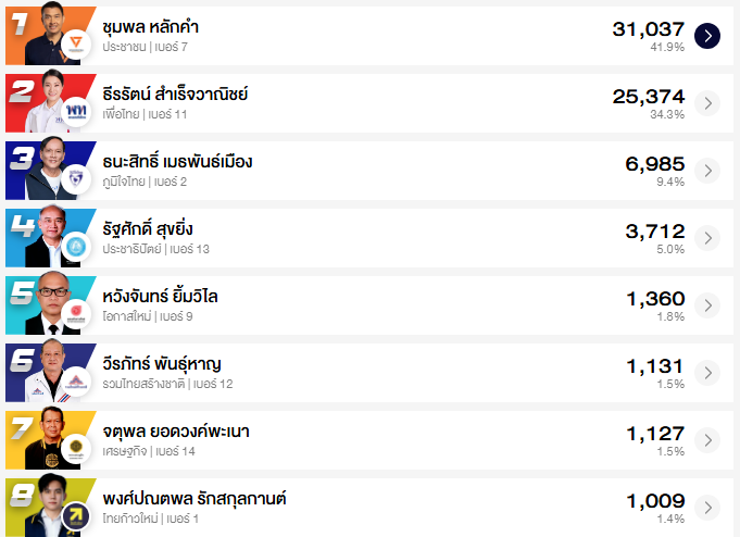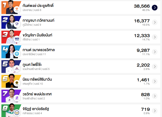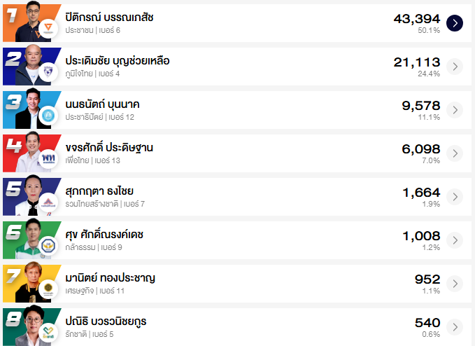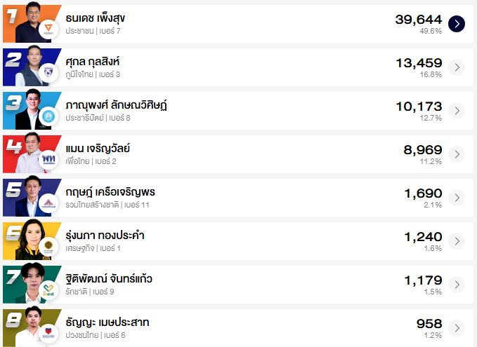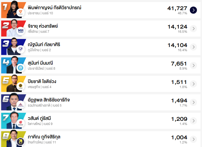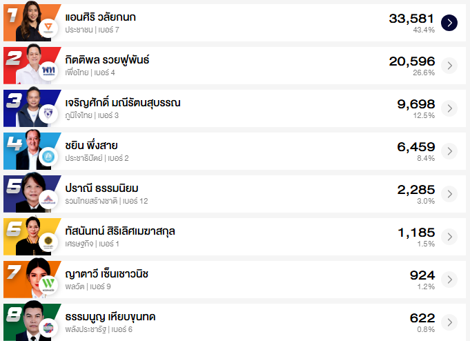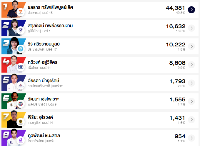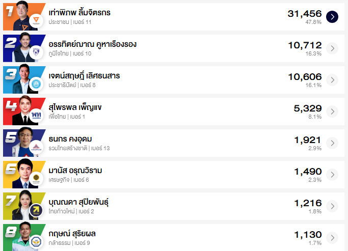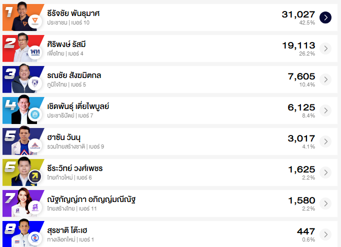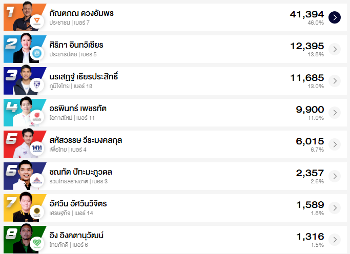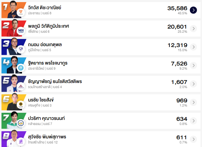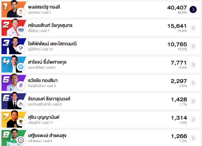 อัปเดต ผลคะแนนเลือกตั้ง สส. กทม. 33 เขต (อย่างไม่เป็นทางการ)