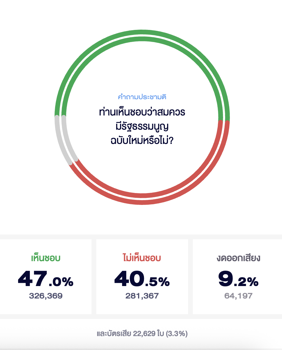 THE STANDARD รายงานสดผลคะแนนแบบเรียลไทม์ (Real-time) หลังปิดหีบเวลา 17.00 น. อัปเดตวินาทีต่อวินาทีจากทุกหน่วยเลือกตั้ง เช็กคะแนนดิบ ใครนำ ใครตาม ผลประชามติผ่านหรือไม่ผ่าน ลุ้นผลไปพร้อมกันที่นี่