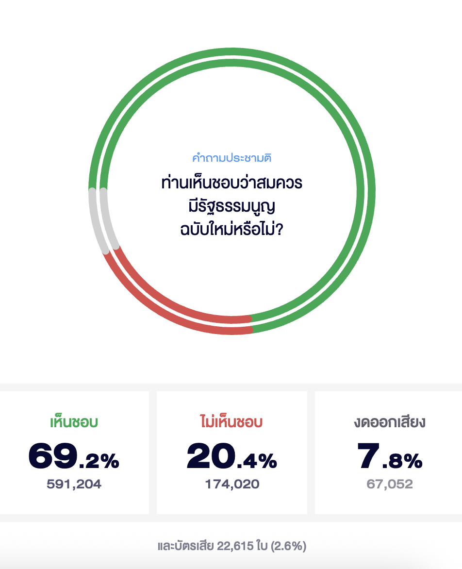 THE STANDARD รายงานสดผลคะแนนแบบเรียลไทม์ (Real-time) หลังปิดหีบเวลา 17.00 น. อัปเดตสดๆ วินาทีต่อวินาทีจากทุกอำเภอ พร้อมลุ้นผล ‘ออกเสียงประชามติ’ จัดทำรัฐธรรมนูญฉบับใหม่ (บัตรสีเหลือง) ว่าจะ ‘ผ่าน’ หรือ ‘ไม่ผ่าน’ เช็กคะแนนดิบ ใครนำ-ใครตาม ได้ที่นี่