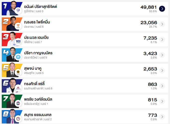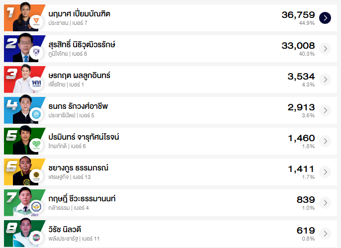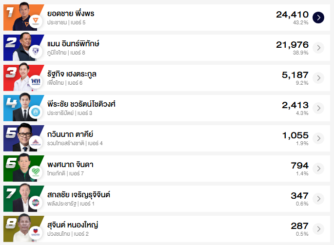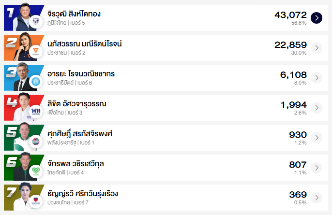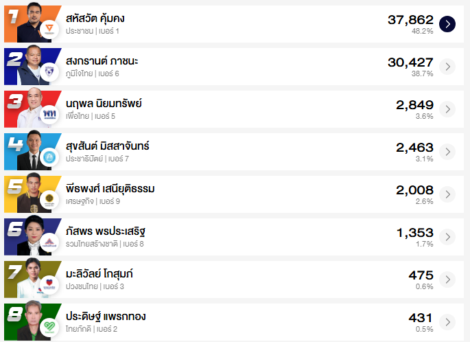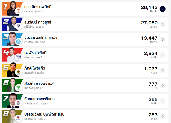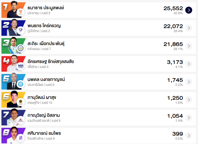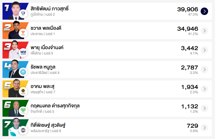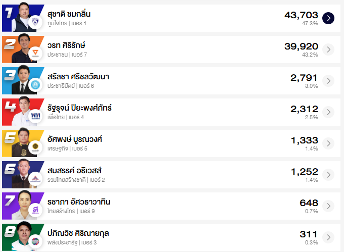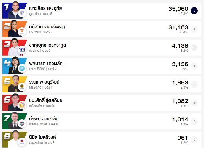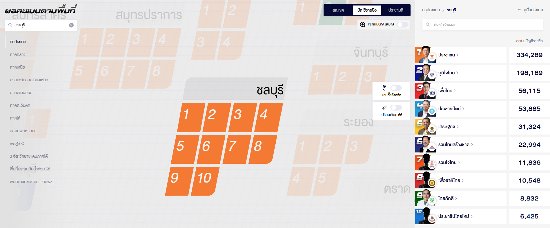 อัปเดต ผลคะแนนเลือกตั้ง สส. ชลบุรี 10 เขต (อย่างไม่เป็นทางการ)