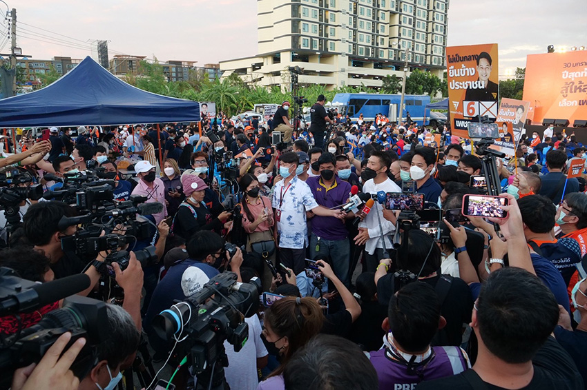 วันนี้ (22 มกราคม) ตั้งแต่เวลา 18.00 น. ที่ลานกีฬาชุมชนเสนานิคม 2 เขตจตุจักร พรรคก้าวไกลจัดปราศรัยใหญ่สำหรับการเลือกตั้งซ่อม ส.ส. เขตจตุจักร-หลักสี่ โดย พิธา ลิ้มเจริญรัตน์ หัวหน้าพรรคก้าวไกล, ชัยธวัช ตุลาธน เลขาธิการพรรคก้าวไกล นำทีม ส.ส. ของพรรค เช่น พิจารณ์ เชาวพัฒนวงศ์, อมรัตน์ โชคปมิตต์กุล, ณัฐพงษ์ เรืองปัญญาวุฒิ, ณัฐชา บุญไชยอินสวัสดิ์ พร้อมด้วย อภิวัฒน์ ด่านศรีชาญชัย ว่าที่ผู้สมัคร ส.ก. เขตจตุจักร ขึ้นเวทีปราศรัย ร่วมรณรงค์หาเสียงให้กับ เพชร-กรุณพล เทียนสุวรรณ ผู้สมัคร ส.ส. พรรคก้าวไกล เบอร์ 6 ท่ามกลางประชาชนที่มาร่วมฟังการปราศรัยอย่างเนืองแน่น โดยตลอดทั้งวันทีมงานของพรรคได้เดินทางพบปะประชาชนในหลายพื้นที่ ไม่ว่าจะเป็นชุมชนการเคหะทุ่งสองห้อง, ชุมชนศิษย์หลวงปู่ขาว เขตหลักสี่ รวมถึงชุมชนโรงสูบน้ำ แขวงลาดยาว เขตจตุจักร ซึ่งอยู่บริเวณด้านหลังมหาวิทยาลัยเกษตรศาสตร์