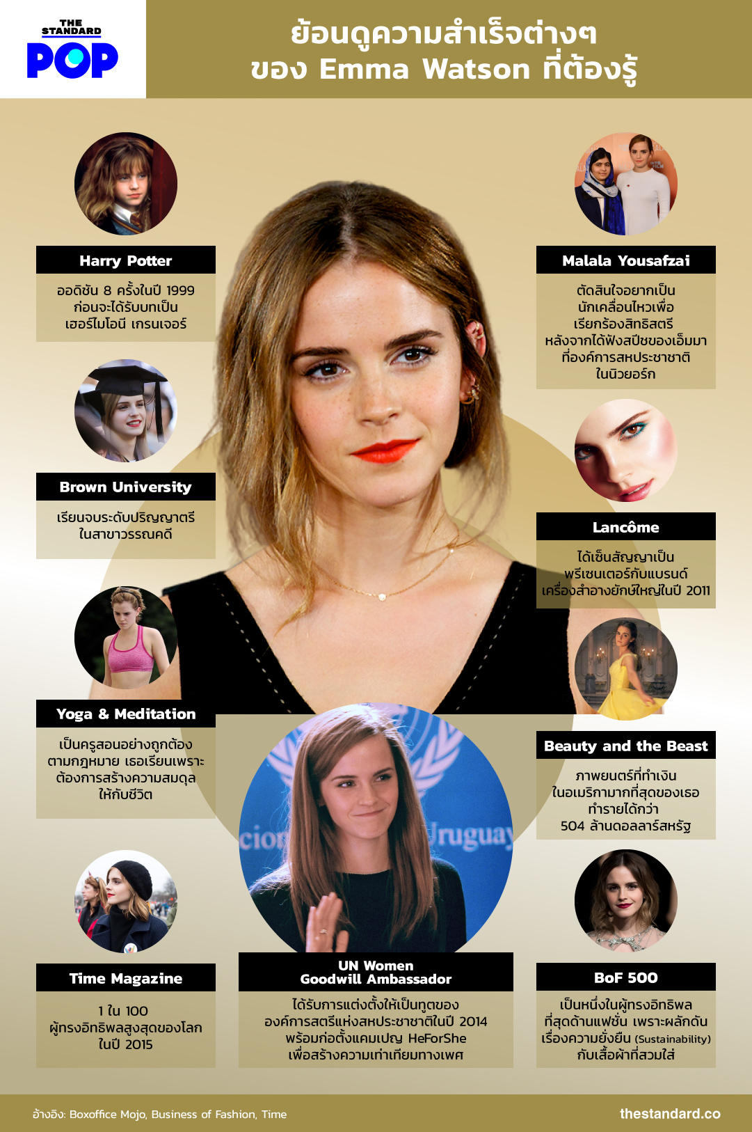 THE STANDARD POP ได้รวบรวมความสำเร็จบ้างส่วนของเอ็มมา ซึ่งถ้าให้ลิสต์ทั้งหมด อินโฟกราฟิกชิ้นนี้ก็คงยาวไม่รู้จบอย่างแน่นอน