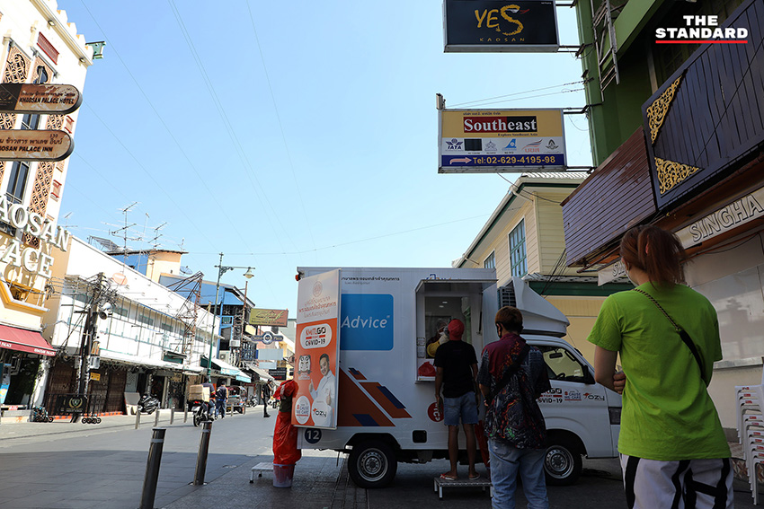 โดยในวันนี้ (6 มกราคม) มีการตรวจคัดกรองผู้ติดโควิดสำหรับพนักงานและลูกจ้างที่ประกอบการอยู่บนถนนข้าวสาร เพื่อสร้างความั่นใจและความปลอดภัยในการกลับมาเปิดให้บริการในวันพรุ่งนี้ (7 มกราคม)