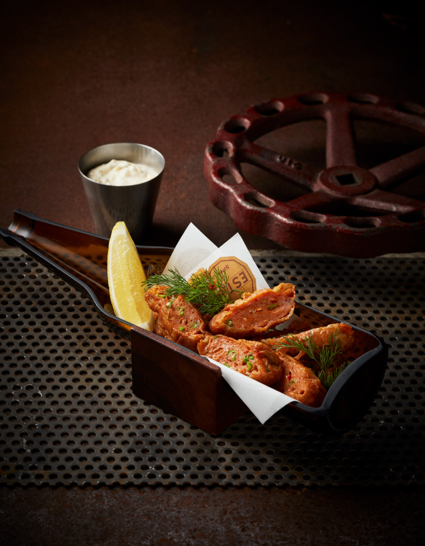 ‘เคลียร์กระเพาะให้ว่างก่อนมา’ นี่เป็นคำเตือนจริงจัง เพราะแค่เมนูเรียกน้ำย่อยที่ทางร้านแนะนำ ก็ต้องพักให้น้ำย่อยได้ทำงานเป็นระยะ ไล่ระดับความกลมกล่อมและความร้อนแรงด้วย 4 เมนูที่เซฟบอกว่า ควรคู่กับโต๊ะนักดื่มหรือกินเพลินๆ ก่อนเริ่มสตาร์ทมื้อหนัก เริ่มจานแรก ทอดมัน (กุ้งและปลา) เบียร์แบทเทอร์กับทาร์ทาร์ เป็นปลื้มกับรสชาติทาร์ทาร์ซอสที่ซ่อนความเค็มแบบไทยของปลาเค็มเอาไว้ได้อย่างแนบเนียน เมื่อความหนุบหนับของทอดมันที่กินแบบไม่จิ้มก็ฟินลิ้น เจอกับทาร์ทาร์สูตรลับ สัญญากับตัวเองหลังเคี้ยวชิ้นสุดท้ายว่าจะกลับมากินอีกแน่นอน