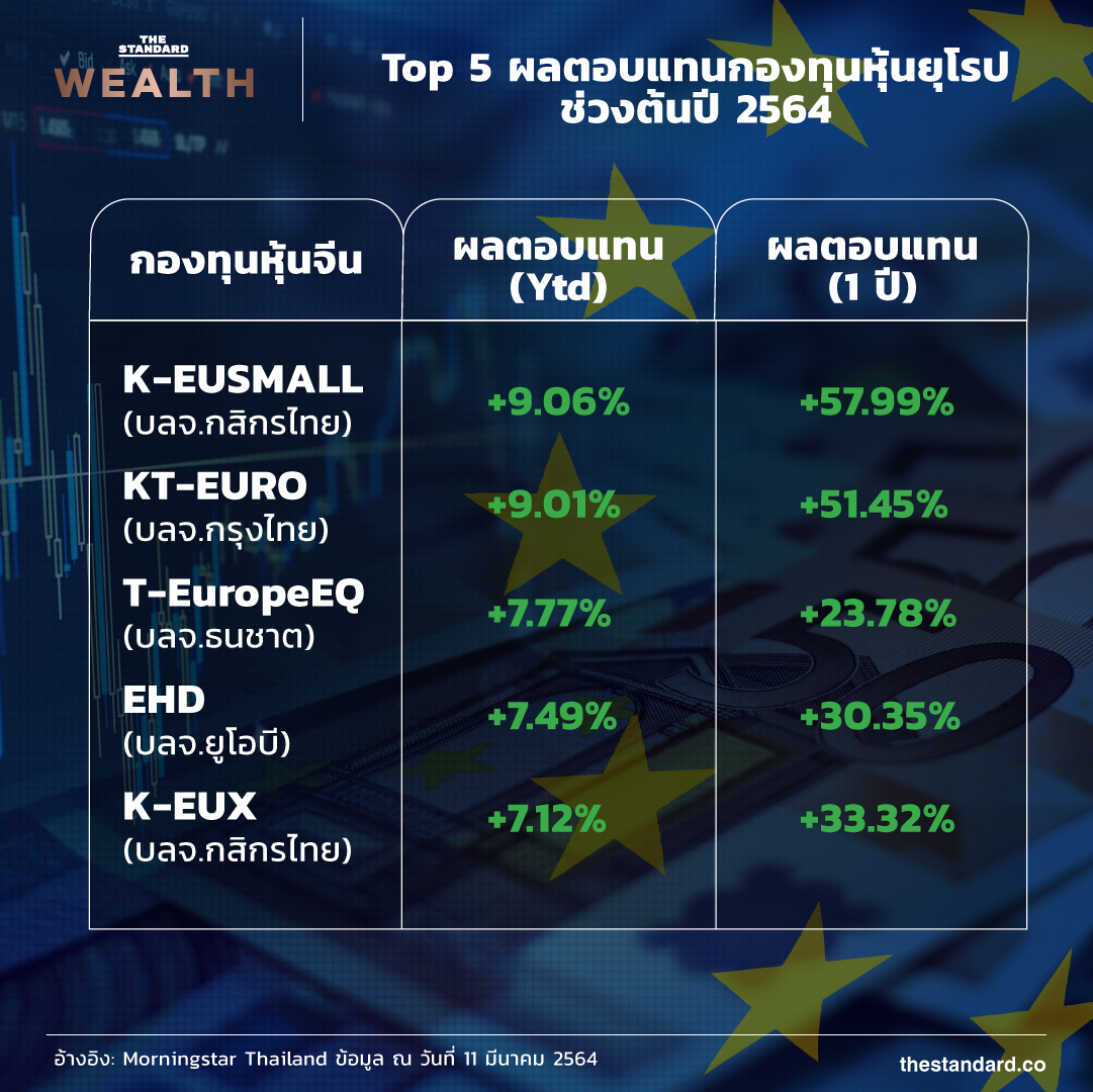 แม้ว่าอัตราการฟื้นตัวในรอบปีของยุโรปจะโดดเด่นไม่แพ้ตลาดหุ้นสหรัฐฯ และดีกว่าตลาดหุ้นจีนโดยภาพรวม แต่เมื่อมองในภาพรวมแล้วจะเห็นว่าตลาดหุ้นยุโรปเพิ่งจะกลับขึ้นมาได้เท่ากับช่วงก่อนโควิด-19 เท่านั้น ในขณะที่ตลาดหุ้นจีน สหรัฐฯ และอีกหลายๆ ตลาดสามารถพุ่งขึ้นไปสูงกว่าระดับก่อนโควิด-19 ได้แล้ว