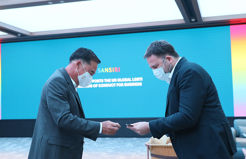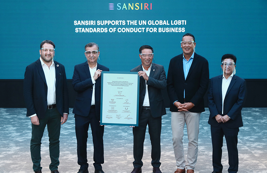 นับเป็นปรากฏการณ์ครั้งสำคัญในฐานะผู้นำทางธุรกิจของประเทศไทยที่จุดประกายสร้างความเปลี่ยนแปลงอันดีให้กับสังคมเสมอมา เมื่อ ‘แสนสิริ’ ผู้ประกอบการอสังหาริมทรัพย์ชั้นนำของเมืองไทย ได้สร้างมาตรฐานใหม่ของการยอมรับความเท่าเทียมและความหลากหลาย โดยนับเป็นบริษัทแรกในประเทศไทยที่ได้ร่วมลงนามในสัญญา ‘UN Global Standards of Conduct for Business’ หรือมาตรฐานข้อปฏิบัติทางธุรกิจขององค์การสหประชาชาติ (UN) เพื่อลดการแบ่งแยก และลดความเหลื่อมล้ำต่อกลุ่มคนที่มีความหลากหลายทางเพศ ซึ่ง THE STANDARD มองว่านี่อาจจะเป็นหมุดหมายที่สำคัญ อันจะสร้างความเปลี่ยนแปลงดีๆ ให้เกิดขึ้นกับสังคมของเราก็เป็นได้