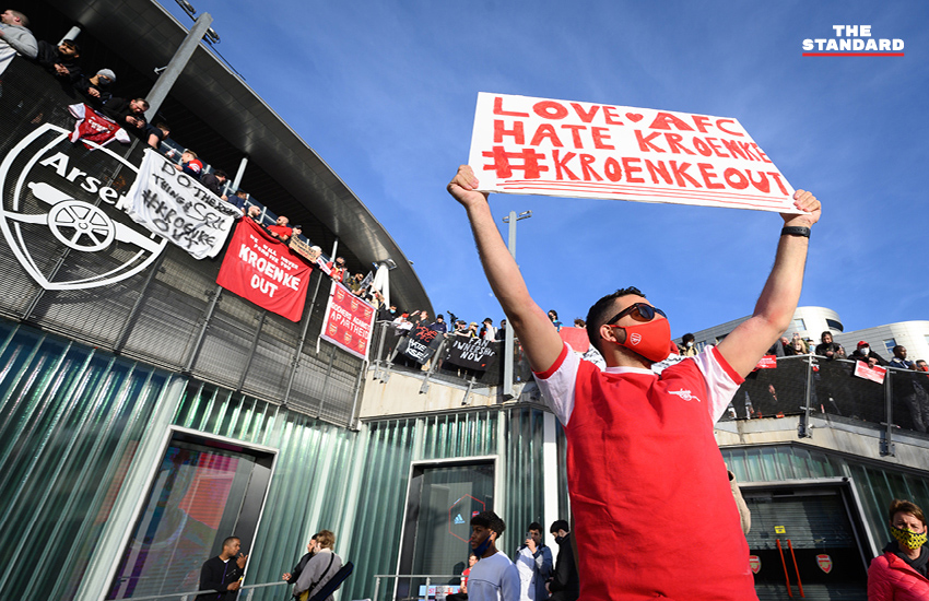 ความผิดหวังและความโกรธเคืองเกิดจากการโดนเจ้าของสโมสรอย่าง Kroenke Sports and Entertainment (KSE) ของ สแตน โครเอ็นเก้ นักธุรกิจกีฬาชาวอเมริกัน นำทีมรักไปเข้าร่วมกับกลุ่มกบฏลูกหนังทั้ง 12 สโมสร ก่อตั้งลีกฟุตบอลที่เห็นแก่ได้มากที่สุดในประวัติศาสตร์อย่าง ‘ซูเปอร์ลีก’