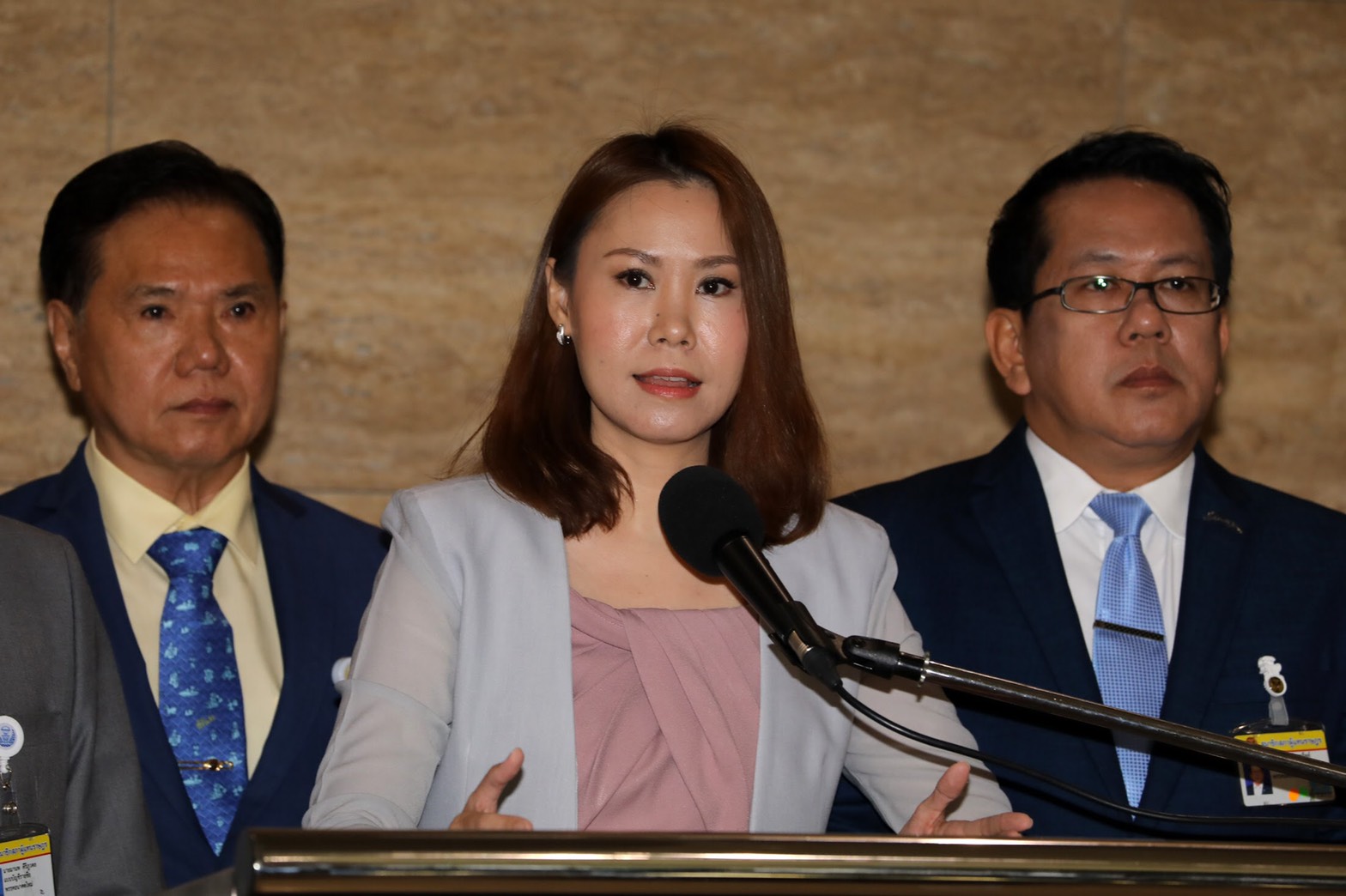 โบว์-ณัฏฐา มหัทธนา คณะทำงานของกรรมาธิการกฎหมายและกระบวนการยุติธรรม สภาผู้แทนราษฎร และนักเคลื่อนไหวทางการเมือง ที่เป็นมือประสานและให้ข่าวแก่สื่อมวลชน