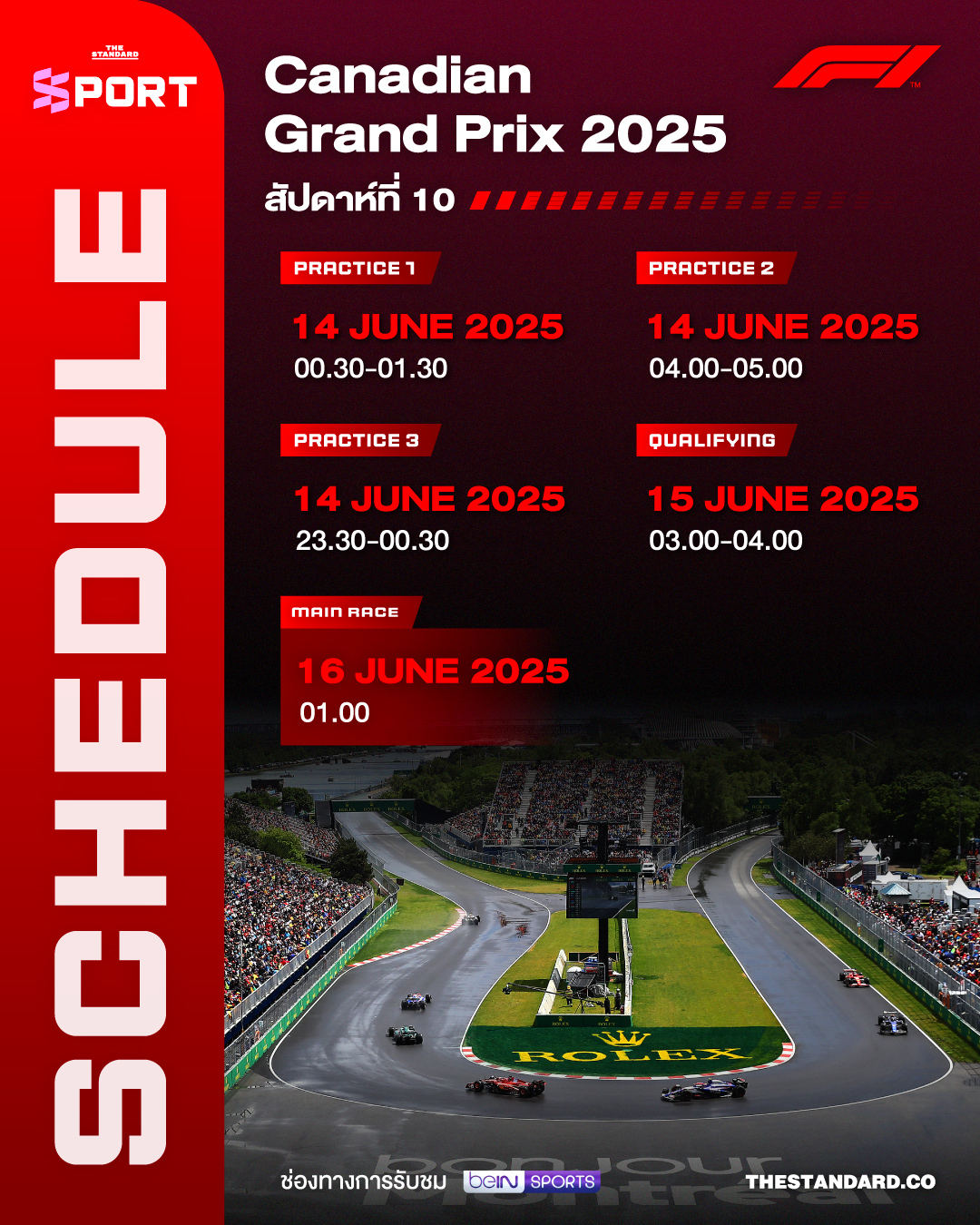 F1 เดินทางมาถึงสนามที่ 11 ของฤดูกาล ในรายการแคนาเดียนกรังด์ปรีซ์ หลังจากพักมา 1 สัปดาห์ โดยสนามแห่งนี้ค่อนข้างจะดึกสักหน่อยสำหรับแฟนๆ F1 ชาวไทย
