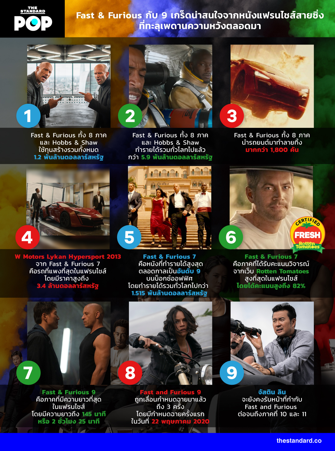 สมการรอคอยจริงๆ สำหรับตัวอย่างล่าสุดของอีกหนึ่งภาพยนตร์ฟอร์มยักษ์แห่งปีอย่าง Fast & Furious 9 ที่ครั้งนี้เหล่าแก๊งซิ่งรถสุดระห่ำจะเหยียบมิดไปให้ถึงอวกาศ THE STANDARD POP จึงถือโอกาสนี้รวบรวม 9 เกร็ตน่าสนใจจากแฟรนไชส์ Fast & Furious ก่อนจะไปซิ่งทะลุ ‘อวกาศ’ พร้อมกันวันที่ 24 มิถุนายนนี้ในโรงภาพยนตร์