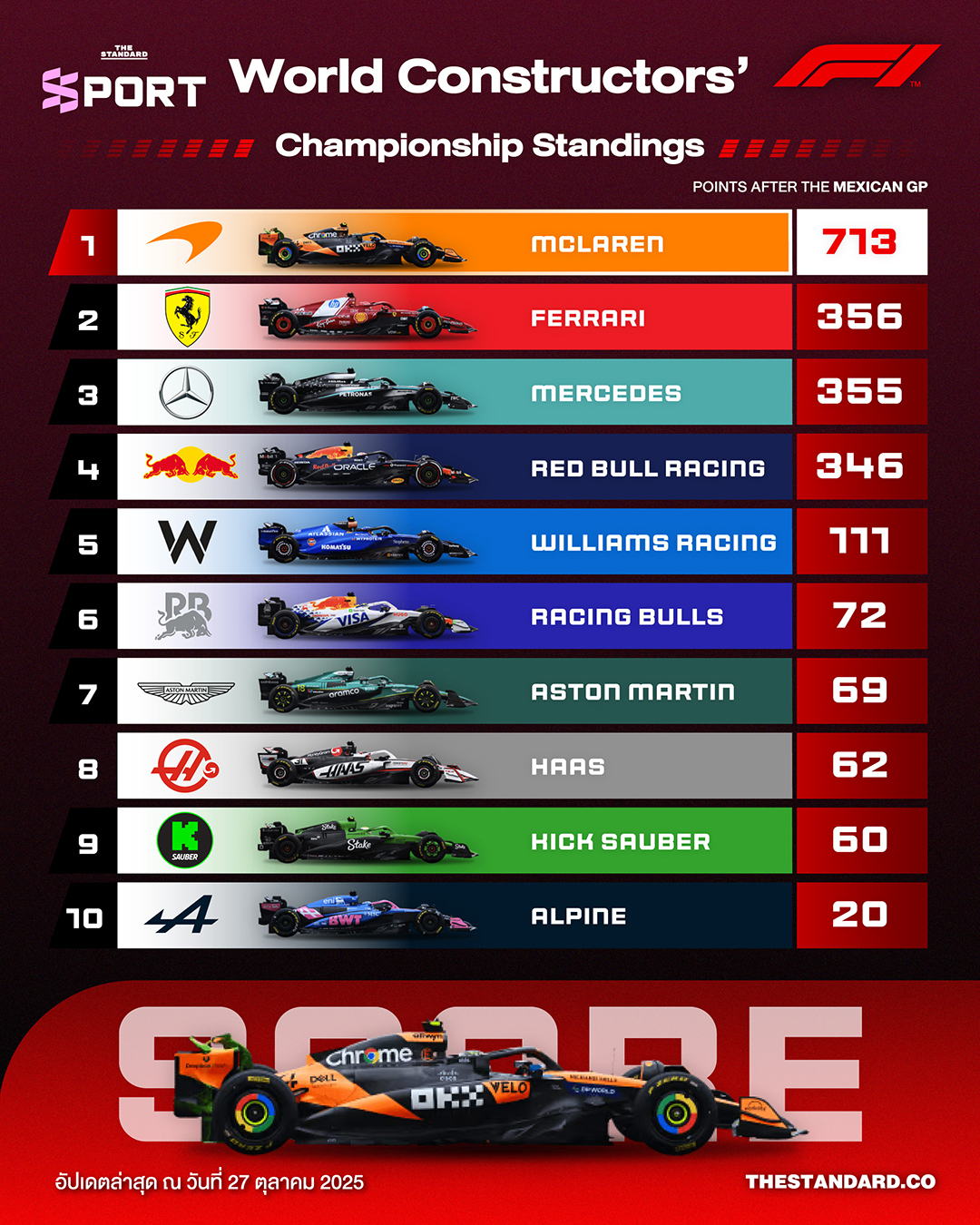 ผลงานการขึ้นโพเดียม 2 เรซติดของ ชาร์ลส์ เลอแคลร์ ส่งผลโดยตรงต่อตารางคะแนนประเภททีมผู้ผลิต ทำให้ตอนนี้ เฟอร์รารี ขึ้นมารั้งอันดับ 2 ในตารางคะแนน แซงหน้า เมอร์ซีเดส เรียบร้อยแล้ว