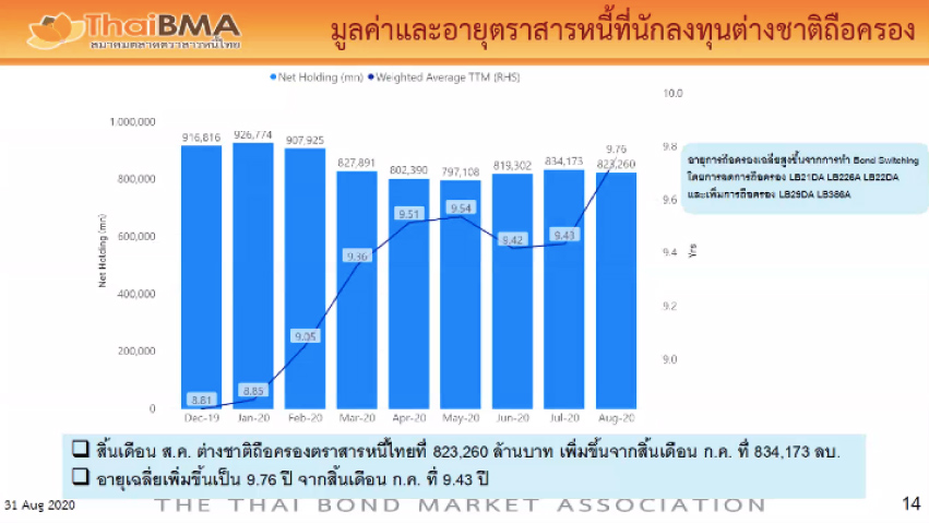 อริยา ติรณะประกิจ รองกรรมการผู้จัดการ สมาคมตลาดตราสารหนี้ไทย กล่าวว่าฝั่งตราสารหนี้ต้องยอมรับว่านักลงทุนต่างชาติมองสถานการณ์เศรษฐกิจเป็นหลัก และจะมองการลงทุนเป็นภูมิภาค โดยปัจจุบันอัตราดอกเบี้ยในไทยถือว่าอยู่ในระดับต่ำ อัตราผลตอบแทนพันธบัตรอยู่ในระดับต่ำเมื่อเทียบกับมาเลเซีย ดังนั้นหากเห็นแนวโน้มเศรษฐกิจปรับตัวดีขึ้นก็มีโอกาสที่จะเห็นเม็ดเงินไหลเข้ามากขึ้น