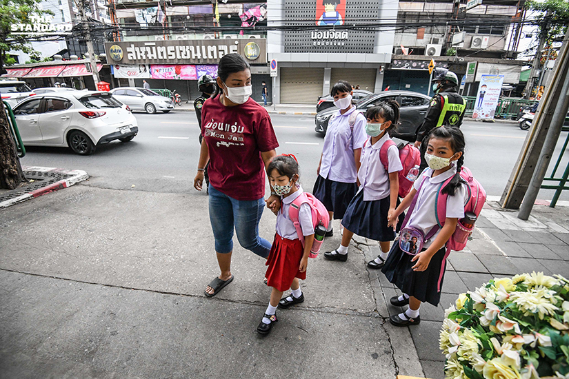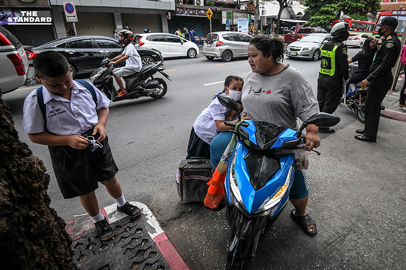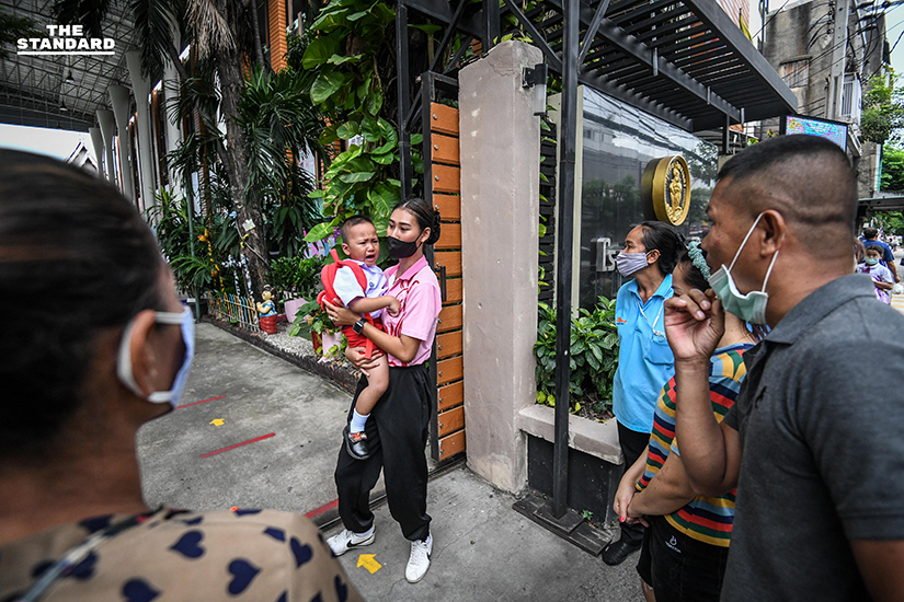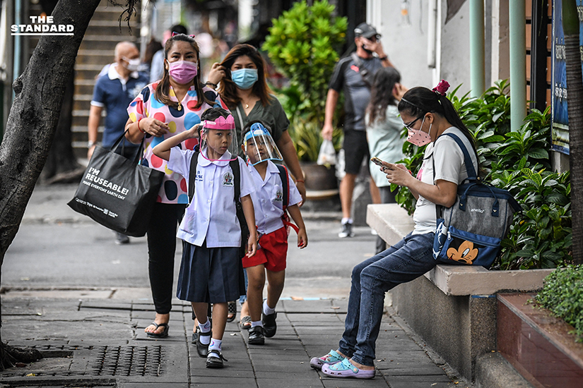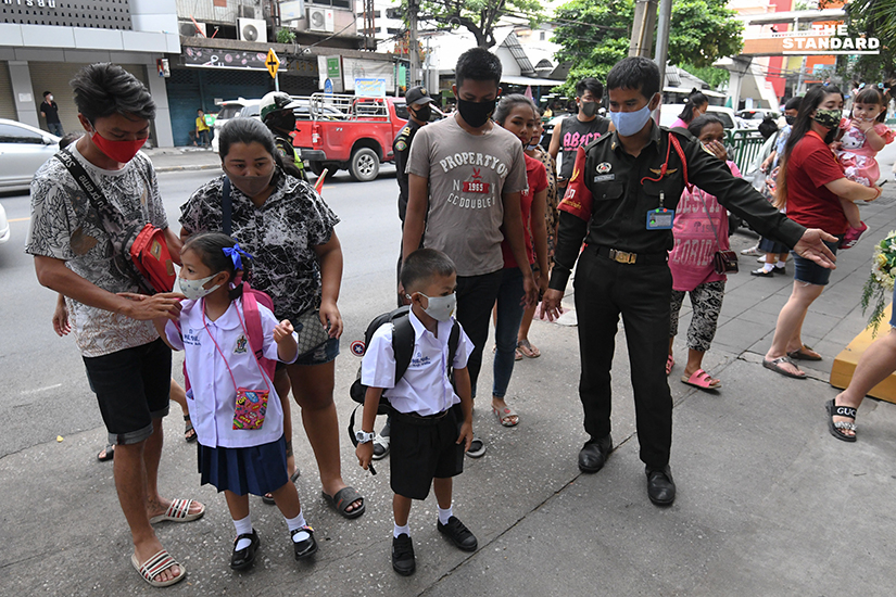 ผู้ปกครอง พ่อแม่ ที่มาส่งลูกๆ ต่างมีความห่วงใย ทั้งภาวะการระบาดของโรคที่ถึงแม้จะคลี่คลายลงแล้ว ก็ยังคงมีการกำชับให้บุตรหลานระมัดระวังตนเอง นอกจากนั้นเด็กๆ หลายคนกำลังเปิดประตูสู่โลกใหม่ ด้วยการเข้าเรียนในโรงเรียนเป็นครั้งแรก จึงทำให้ไม่คุ้นชิน พ่อแม่เองก็เอาใจช่วยและส่งความห่วงใย ให้กำลังใจผ่านสายตาที่จ้องมองเข้าไปในโรงเรียน เป็นภาพคุ้นตาที่เกิดขึ้นในทุกการเปิดภาคเรียนเสมอ
