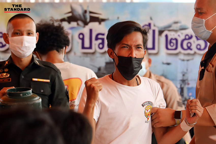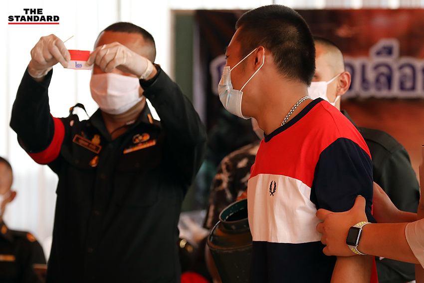 ชายหนุ่มดีใจตะโกนสุดเสียงหลัง เจ้าหน้าที่ประกาศ ‘ดำ’ เป็นที่ทราบกันว่ารอดพ้นจากการเข้ารับราชการทหาร โดยบรรยากาศที่วัดธาตุทอง ถนนสุขุมวิท เขตวัฒนา เป็นหนึ่งในสถานที่ตรวจเลือกทหารกองเกิน หรือเกณฑ์ทหาร ในพื้นที่กรุงเทพมหานคร ซึ่งมีบรรยากาศคล้ายๆ กันกับที่อื่นๆ ทั่วประเทศ คือมีญาติพี่น้องและคนรักมาคอยให้กำลังใจการตรวจเลือกเข้ารับราชการทหาร