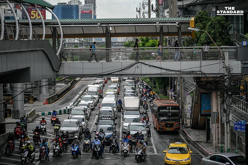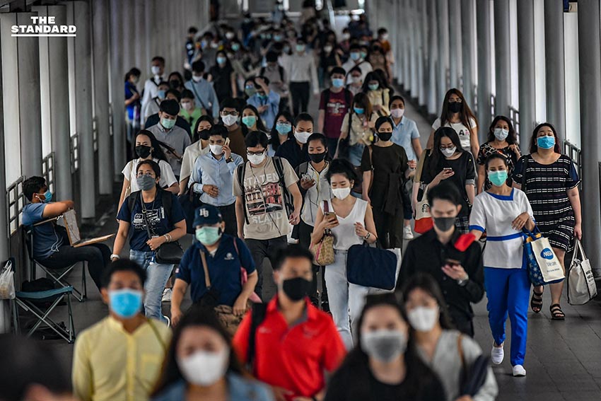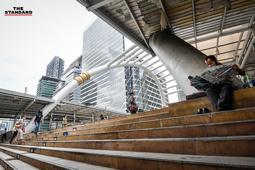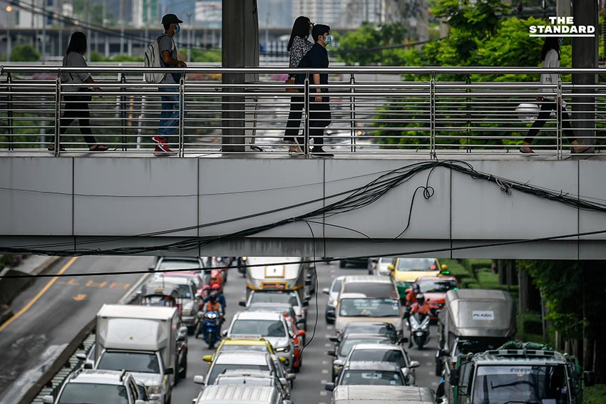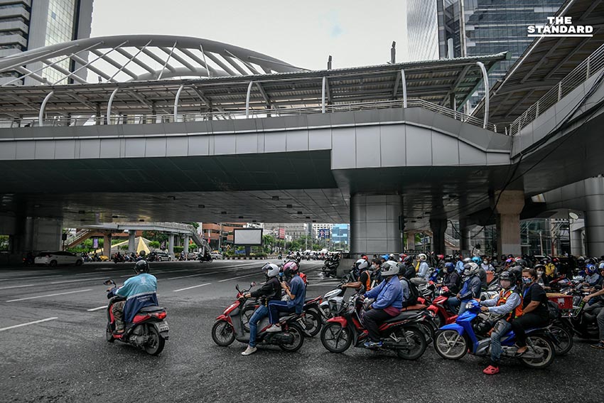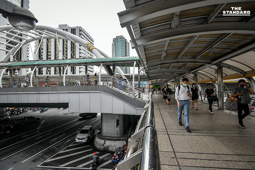 ชีวิตของผู้คนที่เดินทางมาทำงานในบรรยากาศเช้าวันทำการวันแรก บริเวณสกายวอล์กช่องนนทรี หลังจากที่เมื่อวานนี้ (14 มิถุนายน) มีการยกเลิกเคอร์ฟิวเป็นคืนแรก ซึ่งในช่วงเช้าวันนี้ การจราจรในย่านนี้ถือว่าค่อนข้างหนาแน่น เนื่องจากในช่วงเช้ามีฝนตกหลายพื้นที่ของกรุงเทพมหานคร