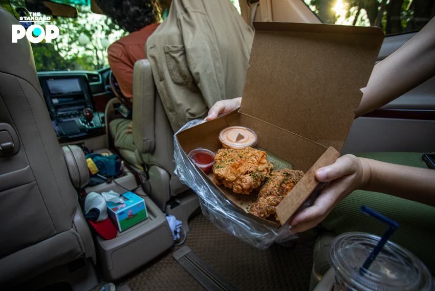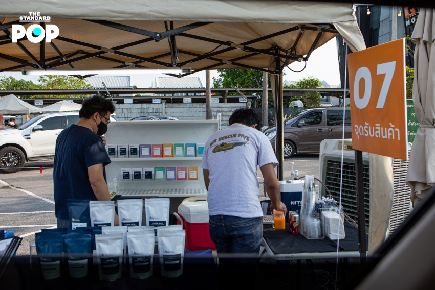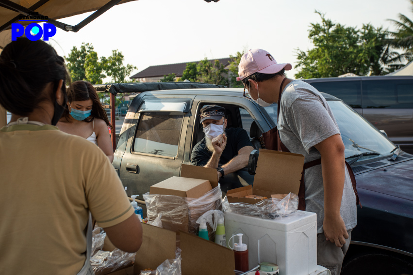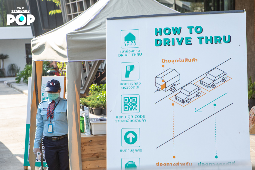 ร้านที่มาออกบูธในสัปดาห์นี้ก็มีร้านอาหารและเครื่องดื่มดังๆ มากมาย ไม่ว่าจะเป็น BRIX Dessert, Henryfry, Alto Coffee Roasters, เนื้อหอมคาเฟ่, นมปัง ฯลฯ เราได้ลงพื้นที่ไปสำรวจว่ามีเมนูอะไรน่ากินบ้าง และร้านค้าต่างๆ เป็นอย่างไร ก็ได้ความมาว่า ถึงแม้วันนี้จะเป็นวันแรก (และ 10 นาทีแรกของการเปิดร้าน) ก็มีคนสนใจมาวนรถเลือกซื้อกันคึกคักเลยทีเดียว หวังว่าการมาออกร้านครั้งนี้จะช่วยอะไรได้บ้าง และดีกว่าไม่ทำอะไรเลยในช่วงที่ร้านต้องปรับตัวมาซื้อกลับบ้านและเดลิเวอรีแบบเดียวอย่างนี้ เพราะลูกค้าที่อยู่นอกพื้นที่ก็หายไปหมด การได้มาออกร้านนอกสถานที่จึงกลายเป็นการหาลูกค้ากลุ่มใหม่ๆ มีหลายร้านที่พยายามปรับหน้าร้านให้มีความน่าสนใจมากขึ้นเพื่อความอยู่รอด อย่างเนื้อหอม คาเฟ่ ที่กำลังจะปรับหน้าร้านชั้นล่างให้กลายเป็นซูเปอร์มาร์เก็ต และทำโครงการสำหรับช่วยเหลือวินมอเตอร์ไซค์ เรียกได้ว่า ยุคนี้เป็นยุคแห่งการลองอะไรใหม่ๆ และตลาด Drive-Thru ก็เช่นกัน เราคงต้องมาดูกันต่อไปว่า จะได้รับผลตอบรับดีมากน้อยแค่ไหน และจะมีตลาด Drive-Thru ที่อื่นๆ อีกหรือไม่
