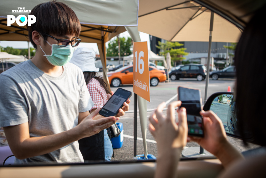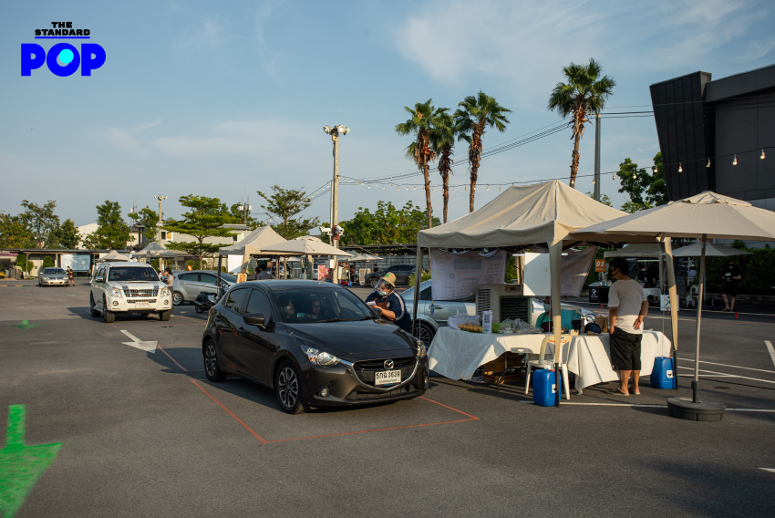 เมื่อขับรถเข้ามาใน The Circle Ratchapruk จะเจอกับบริเวณที่จัดงาน มีป้ายบอกชัดเจน และมีพนักงานวัดไข้ก่อนที่จะปล่อยให้รถเข้างาน บริเวณที่จัดงานเป็นลานจอดรถกลางแจ้งที่ถูกปรับให้เป็นตลาด มีการนำเต็นท์มาวาง โดยแต่ละเต็นท์มีความห่างกัน 10 เมตร ถนนถูกแยกออกเป็น 2 เลน เลนหนึ่งสำหรับขับวน และอีกเลนหนึ่งสำหรับจอดซื้อของโดยไม่ต้องลงจากรถ การซื้อนั้นก็ง่ายดายทีเดียว เพียงแค่คุณจอดที่เลนสำหรับจอดซื้อของ เปิดกระจก ดูเมนู สั่งอาหาร และสแกนจ่ายด้วย QR Code เพื่อลดการสัมผัส