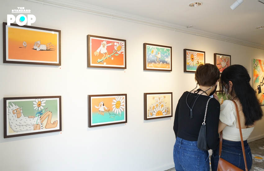 งานเพนต์ในนิทรรศการกินพื้นที่ทั้ง 2 ชั้นของ Red.cose เมื่อเข้ามาคุณจะถูกต้อนรับด้วยคาแรกเตอร์ POORBOY ถือดอกเดซี่อยู่บนผนังกลาง ขนาบด้วยผนังเหลืองส้มสดใสที่เจ้า POORBOY และผองเพื่อนเล่นอยู่ท่ามกลางสวนเดซี่หน้ายิ้มทั่วทั้งบริเวณ ซึ่งคุณสามารถเดินตาม POORBOY ไปเรื่อยๆ เพื่อชมงานต่อบริเวณชั้น 4 ได้เลย