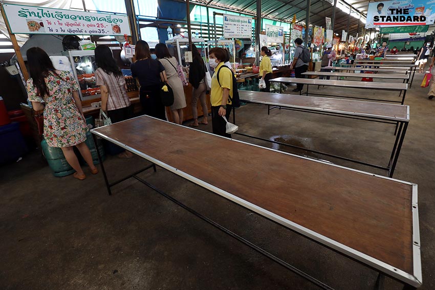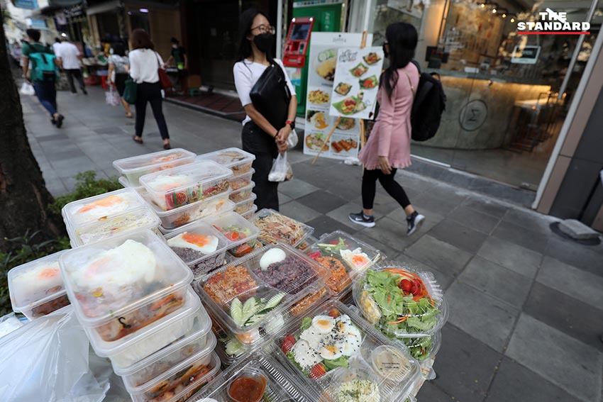 ขณะที่บริเวณริมทางเท้าย่านที่มนุษย์ออฟฟิศยังมาทำงานปกติถูกเปลี่ยนเป็นร้านค้าจำหน่ายอาหารกล่องขนาดย่อม จากร้านที่เคยนั่งรับประทานได้กลายเป็นร้านที่ต้องซื้อกลับไปรับประทาน ซึ่งทั้งหมดล้วนเป็นมาตรการที่ทำให้ทั้งผู้ขายและผู้ซื้อต่างต้องปรับตัวในสถานการณ์ที่โรคโควิด-19 กำลังระบาดรุนแรงขึ้นในกรุงเทพมหานครและหลายจังหวัดทั่วไทยเวลานี้