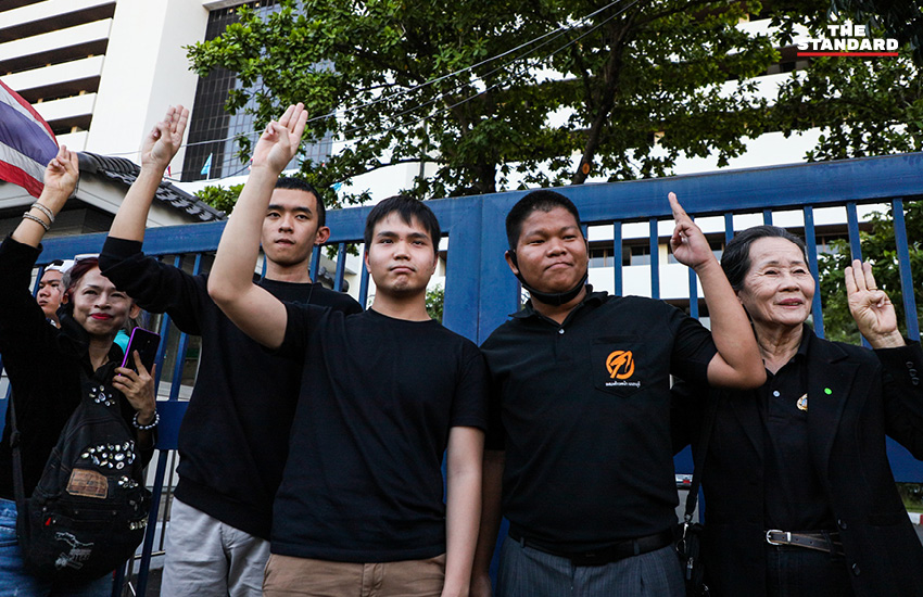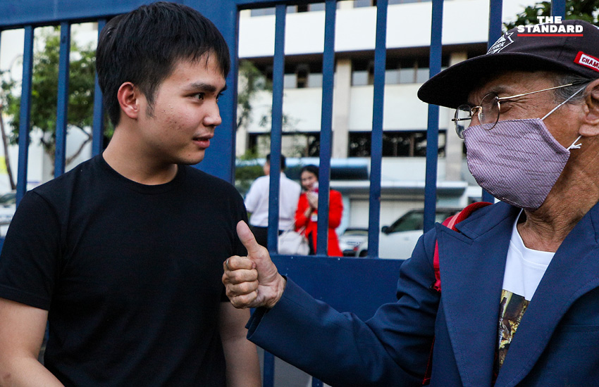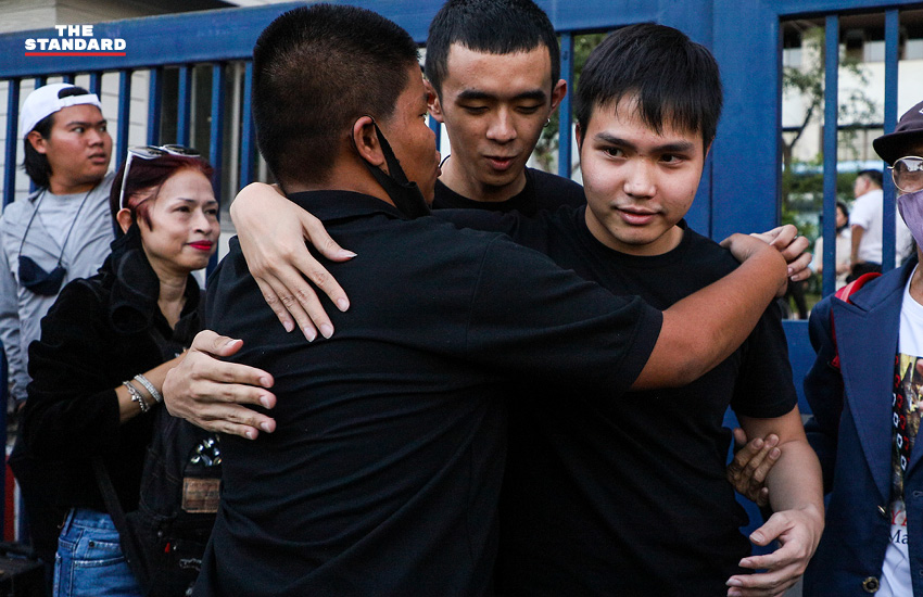 วันนี้ (26 สิงหาคม) เวลาประมาณ 17.50 น. ที่ศาลอาญา ถนนรัชดาภิเษก ฟอร์ด-ทัตเทพ เรืองประไพกิจเสรี และ เจมส์-ภานุมาศ สิงห์พรม สองแกนนำคณะประชาชนปลดแอก ผู้ต้องหาตามหมายจับศาลอาญาใน 7 ข้อหา กรณีการชุมนุมเยาวชนปลดแอกเมื่อวันที่ 18 กรกฎาคมที่ผ่านมา ได้รับการปล่อยตัวชั่วคราว หลังถูกตำรวจจับกุมและควบคุมตัวไปยัง สน.สำราญราษฎร์ เมื่อช่วงเที่ยงวันนี้