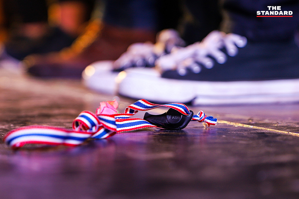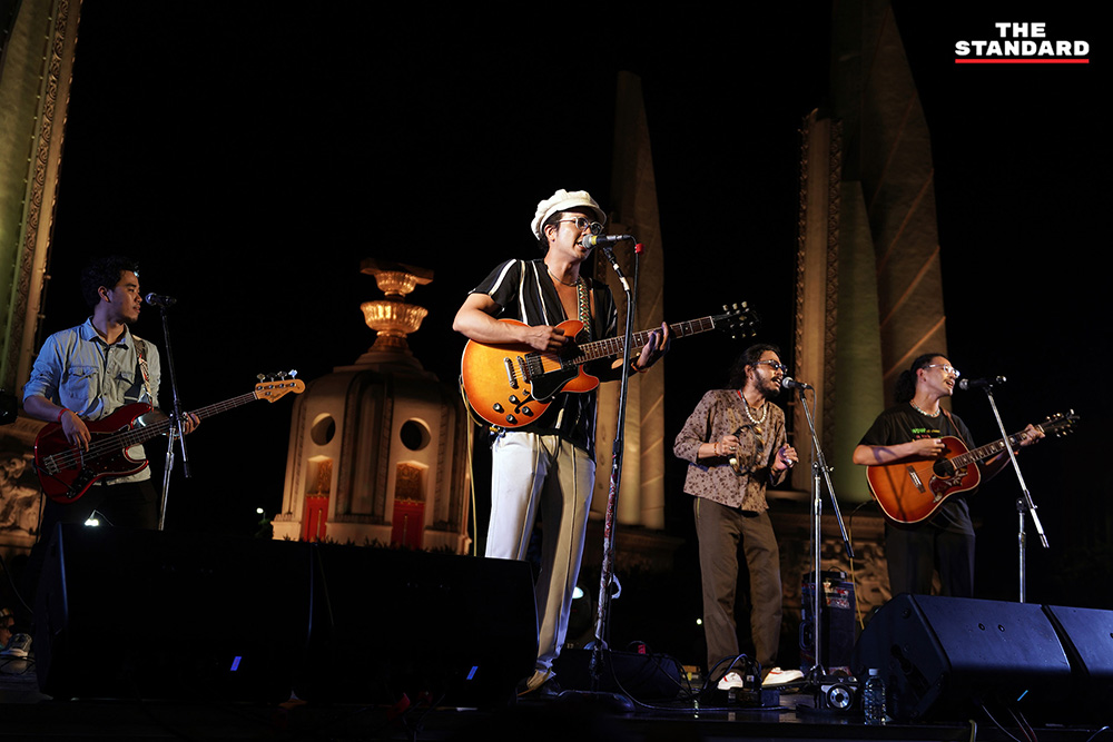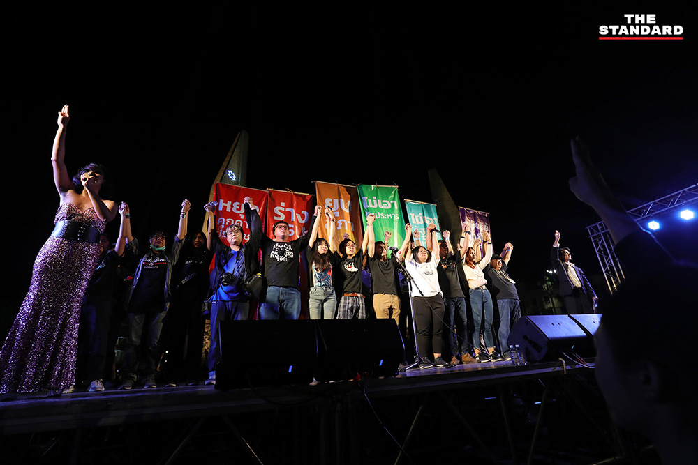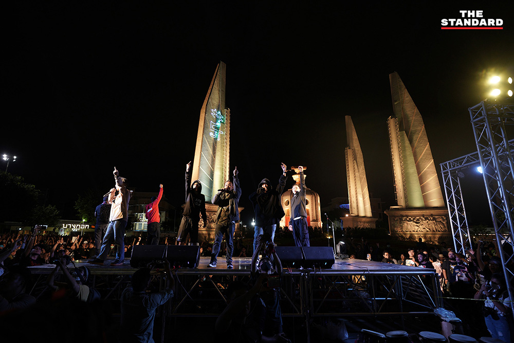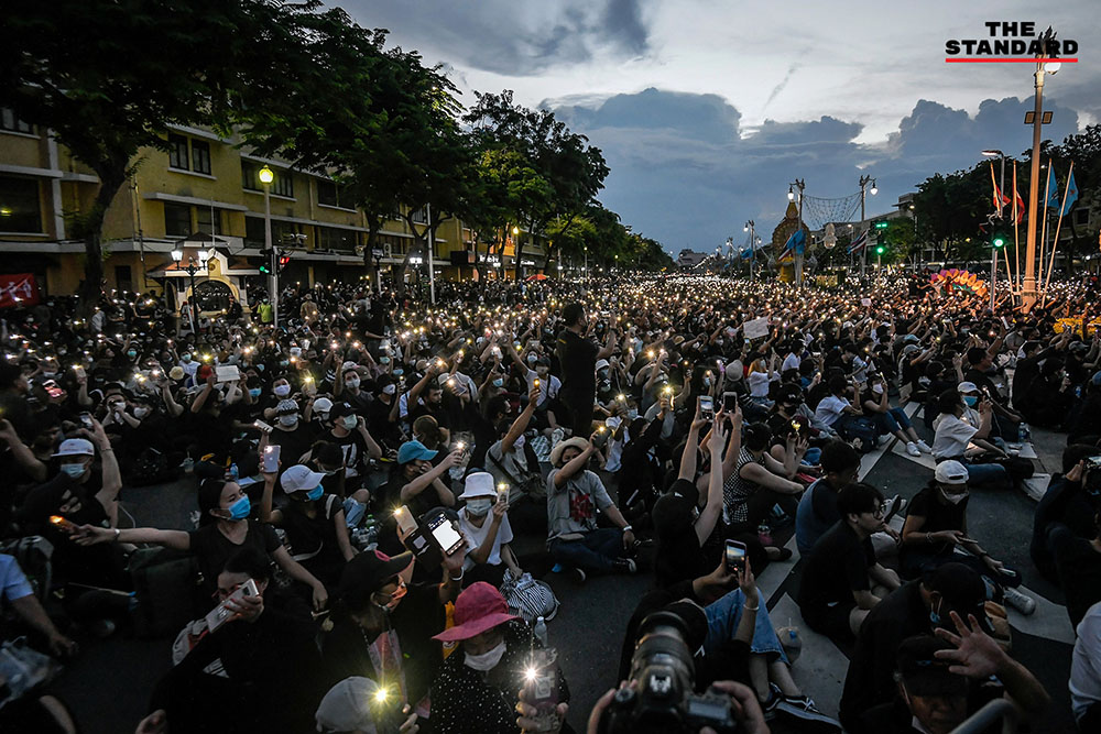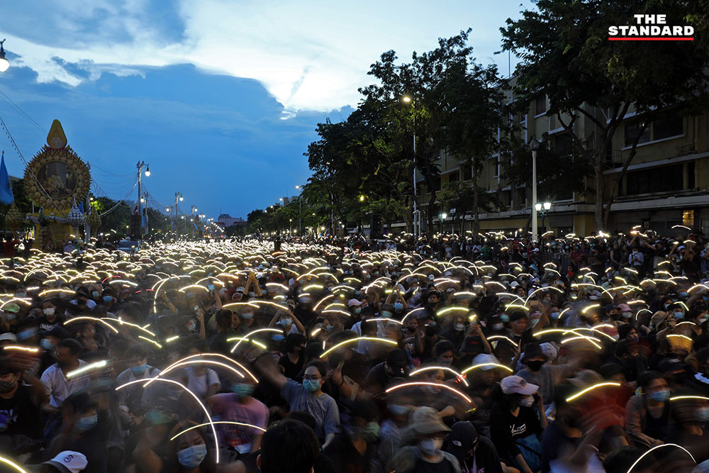 จากนั้นศิลปินวงสามัญชนชวนผู้ชุมนุมทุกคนเปิดไฟฉายโทรศัพท์มือถือโบกมือตามจังหวะเพลง แสงไฟทอดยาวจากอนุสาวรีย์ประชาธิปไตยไปทั่วถนนราชดำเนิน