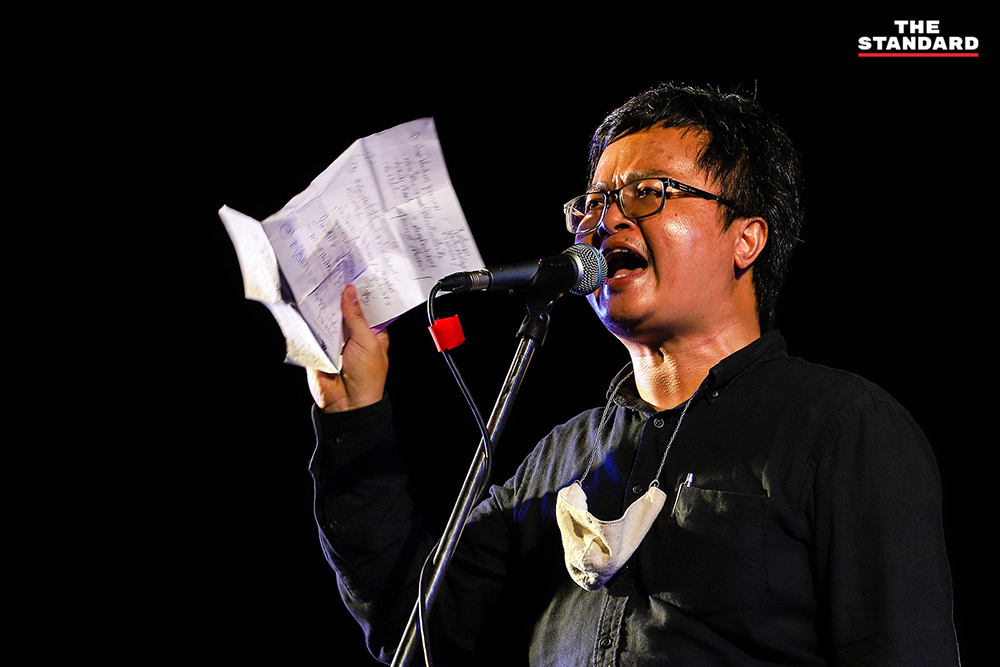 “ข้อเรียกร้องเกี่ยวกับสถาบันกษัตริย์ที่ให้อยู่คู่สังคมไทย อยู่เหนือการเมือง เขาขอให้พวกเราหยุดฝัน ผมขอประกาศว่า พวกเราจะฝันต่ออย่างเเน่นอน และจะเผยแพร่ความฝันนี้ไปทั่วประเทศ เพื่อให้มาร่วมฝันกับพวกเรา ความฝันที่อยากเห็นสถาบันกษัตริย์อยู่คู่สังคมไทย อยู่ใต้รัฐธรรมนูญ อยู่เหนือการเมือง เราจึงเรียกร้องให้สถาบันกษัตริย์มาร่วมฝันกับเรา เพื่อให้เราได้การปกครองระบอบประชาธิปไตยอันมีพระมหากษัตริย์ทรงเป็นประมุขอย่างแท้จริง”