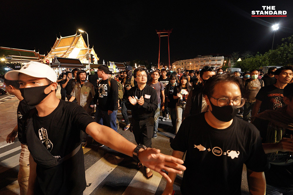 “ผมในฐานะตัวแทนของคณะประชาชนปลดแอก ขอบคุณทุกคนที่มาร่วมทวงคืนประชาธิปไตย อนาคตที่ดีของประเทศนี้ให้กลับมาอยู่ในมือของพวกเรา ถ้าในเดือนกันยายนไม่มีการตอบสนองใดๆ จากรัฐบาล ที่เป็นผลบวกกับข้อเรียกของเราทั้ง 3 ข้อ เราจะยกระดับการชุมนุมต่อไป และจะกลับมาพบกันอีกที่นี่” ทัตเทพ เรืองประไพกิจเสรี แกนนำคณะประชาชนปลดแอก กล่าวปิดท้าย