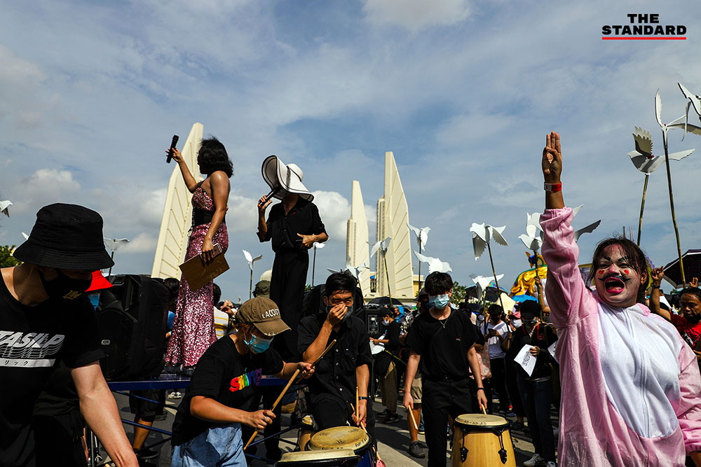 ขณะที่ภายในงานมีการจัดกิจกรรมปราศรัยสลับกับการแสดงศิลปะทั้งบนเวทีและพื้นถนน โดยช่วงหนึ่งศิลปินวงสามัญชนขึ้นเล่นดนตรีคั่นระหว่างการปราศรัยของแกนนำ ก่อนการเล่นดนตรีได้กล่าวขอบคุณผู้ใหญ่ทุกคนที่มาร่วมชุมนุมเคียงข้างกับนิสิต นักศึกษาในวันนี้ พร้อมขอบคุณคนเสื้อแดงที่อดทนกับการคุกคามและมายืนเคียงข้าง รวมถึงปรบมือให้กำลังใจผู้ลี้ภัยทางการเมืองทุกคน