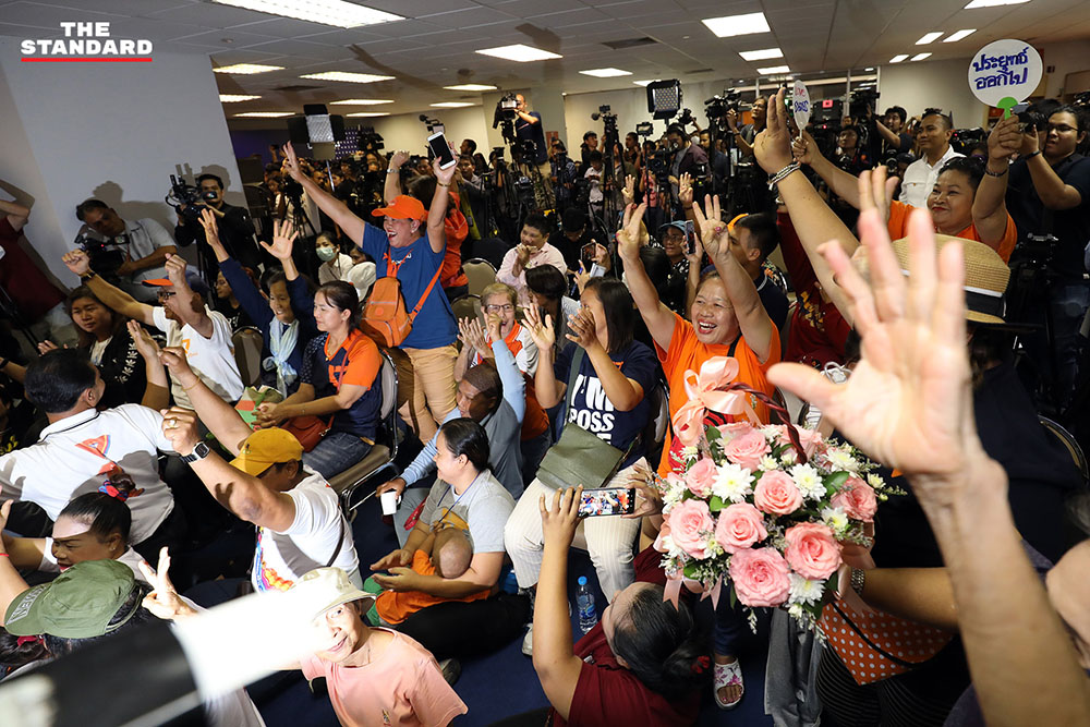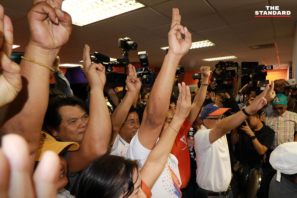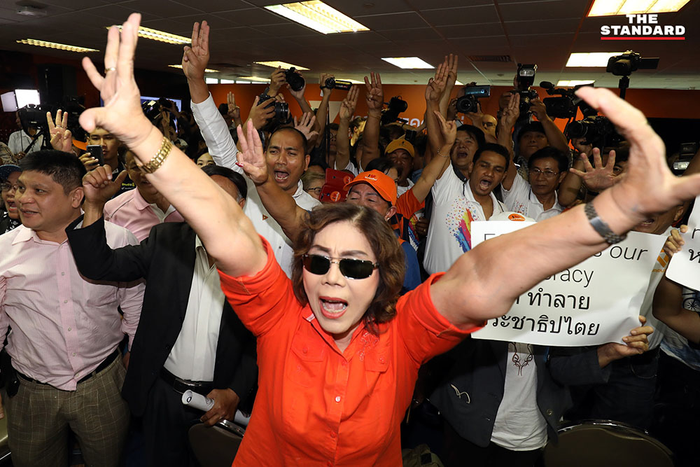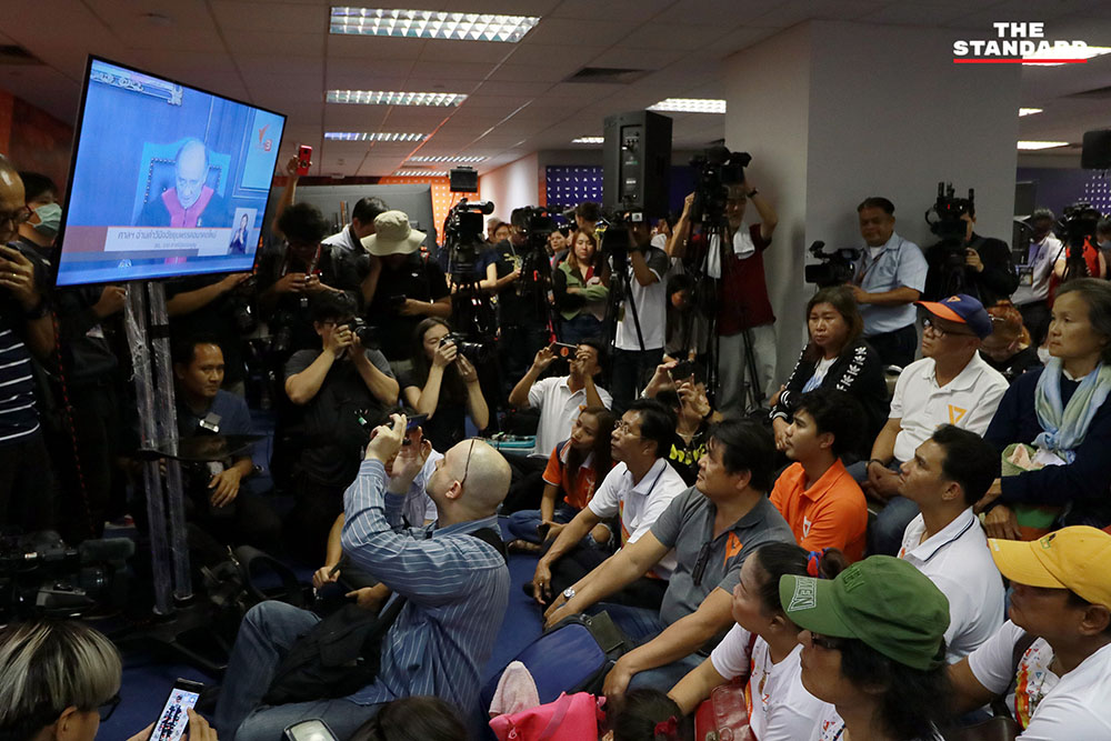 วันนี้ (21 มกราคม) ที่พรรคอนาคตใหม่ อาคารไทยซัมมิท ทาวเวอร์ บรรยากาศแกนนำพรรคอนาคตใหม่และผู้สนับสนุน ต่างร้องดีใจหลังศาลรัฐธรรมนูญวินิจฉัยว่าการกระทำของธนาธร ปิยบุตร พรรณิการ์ และพรรค ไม่เป็นการล้มล้างการปกครองฯ ตามรัฐธรรมนูญ