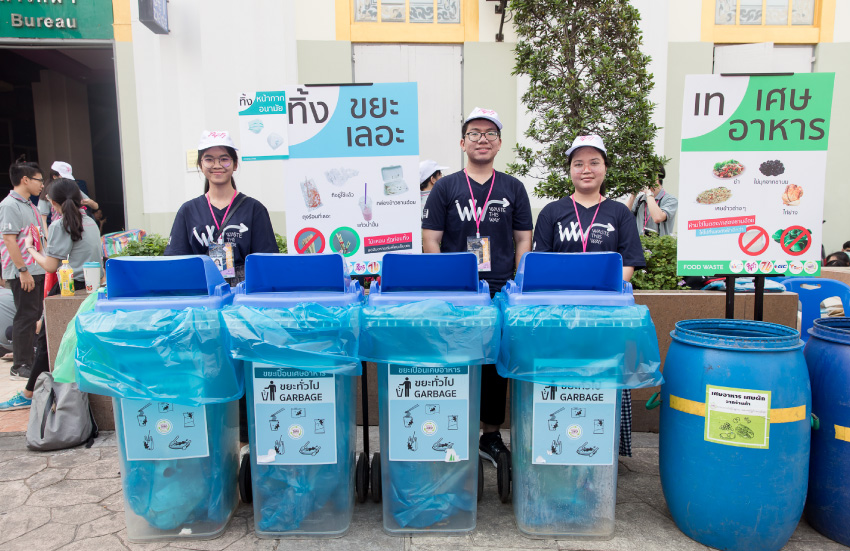 รอบบริเวณงานยังมีถังแยกขยะ ทั้งถังแยกขยะอินทรีย์ เศษอาหาร ถังแยกภาชนะที่สามารถกลับมารีไซเคิลได้ ถังแยกสำหรับภาชนะปนเปื้อนที่ยากต่อการนำกลับมารีไซเคิล รวมถึงถังแยกบรรจุภัณฑ์พลาสติกชีวภาพพร้อมป้ายคำอธิบาย และทีมเจ้าหน้าที่คอยให้คำแนะนำในการแยกขยะอย่างถูกวิธี