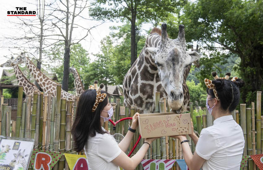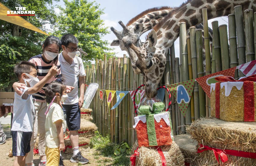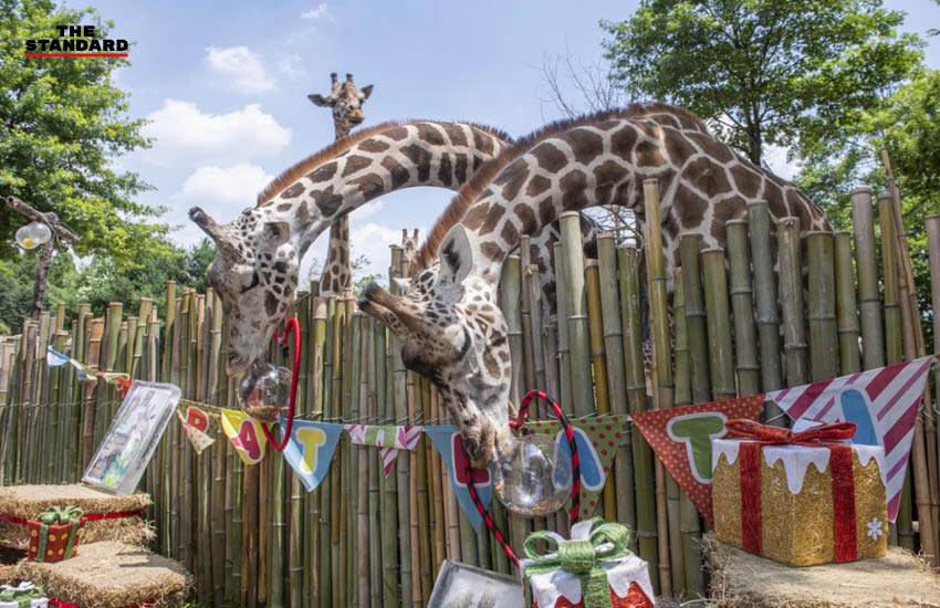 โดยพวกมันได้รับของขวัญและขนมสุดพิเศษเนื่องในวันยีราฟโลก ซึ่งตรงกับวันที่ 21 มิถุนายนของทุกปี
