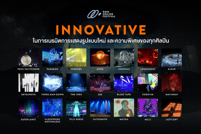 • แม้การระบาดของโควิด-19 จะทำให้สถานการณ์ไม่เหมือนเดิม แต่ก็ไม่อาจหยุดนิ่งได้ นี่จึงได้กลายมาเป็นจุดเริ่มต้นของ GMM Online Festival ซึ่งจะเข้ามาเป็นนิยามใหม่ของคำว่า ‘คอนเสิร์ตไร้พรมแดน’