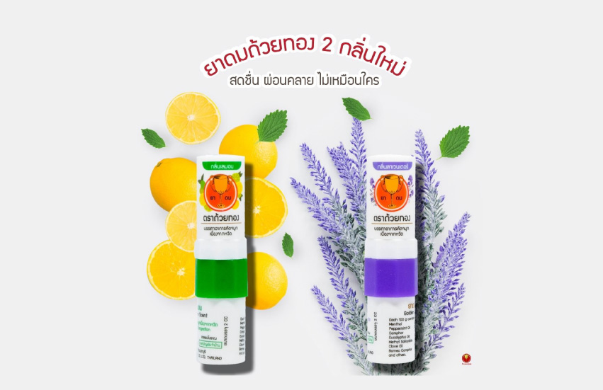 “พูดถึงคุณสมบัติทั่วไปของ ‘ยาดมตราถ้วยทอง’ ก็คงคล้ายๆ กันคือ บรรเทาอาการคัดจมูก จากสมุนไพร เช่น เมนทอล การบูร น้ำมันยูคาลิปตัส น้ำมันกานพลู แต่เรามองเห็นว่าในตลาดยาดมมีกลิ่นเดียว งั้นเรามีสองกลิ่น คือ กลิ่นลาเวนเดอร์และกลิ่นเลมอน ตอบโจทย์คนที่มองหาความแปลกใหม่ ก็มีเราเป็นทางเลือก”