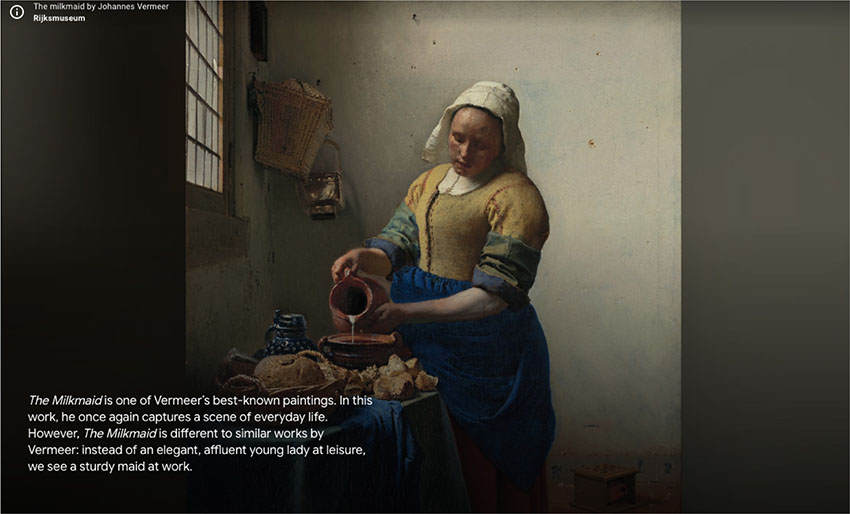 พิพิธภัณฑ์ศิลปะยอดนิยมในวอชิงตัน ดี.ซี. ปกติไม่คิดค่าเข้าชมอยู่แล้ว พอเป็นรูปแบบออนไลน์จึงจัดนิทรรศการสองงานด้วยกัน งานแรกเป็นนิทรรศการ Fashioning a Nation แสดงประวัติศาสตร์แฟชั่นของอเมริกาตั้งแต่ปี 1740-1895 และอีกนิทรรศการคือ Vermeer and the Master of Gerne Painting รวมผลงานของ Johannes Vermeer จิตรกรยุคทองแห่งเนเธอร์แลนด์ เจ้าของผลงานภาพวาด Girl with a Pearl Earring ที่เราจะหลงจับจ้องภาพได้ยาวนานเหมือนทุกอย่างหยุดนิ่งอยู่ตรงหน้า