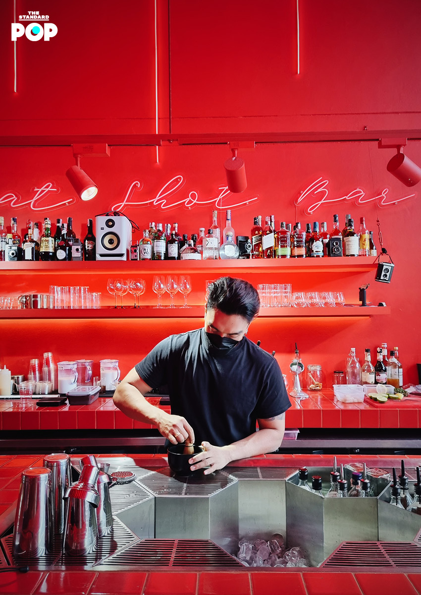 ในช่วงเวลากลางวันที่แสงแดดจัดจ้า Great Shot Bar เป็นคาเฟ่สีสันจัดจ้าน บรรยากาศแสบสัน เสิร์ฟเครื่องดื่มรสดีหลากชนิดจำพวกชากาแฟคุณภาพที่ดื่มแล้วรับรองว่าไม่ใช่แค่ถ่ายรูปสวยแต่รสยังอร่อย ทว่าพอตกกลางคืนที่นี่จะแปลงร่างเป็นบาร์สีแดงก่ำ ให้ความรู้สึกลึกลับขึ้น ราวกับนั่งอยู่ในห้องล้างฟิล์มไม่ผิดเพี้ยน เสิร์ฟอาหารกินเล่นและเครื่องดื่มแอลกอฮอล์หลากชนิด ทั้งเหล้า คราฟต์เบียร์ รวมถึงค็อกเทลประจำร้านที่แม้ตอนนี้เมนูจะยังเคาะไม่ลงตัวนัก แต่นักดื่มสามารถสั่งได้ตามใจปรารถนา หากไม่รู้จะสั่งอะไร แค่เอื้อนเอ่ยรสชาติที่อยากดื่มหรือบอกความรู้สึกตนเองออกไปก็เพียงพอ (Special Cocktail 350 บาท)
