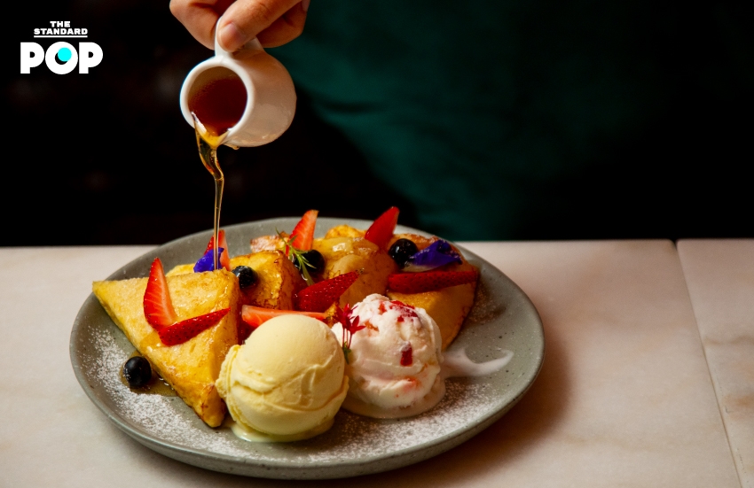 ปิดท้ายด้วยเครื่องดื่มสนุกๆ อย่าง Lime Sparkling Espresso (125 บาท) เอสเพรสโซช็อตที่เพิ่มความสนุกด้วยสปาร์กกลิงวอเตอร์ น้ำมะนาว และน้ำตาลที่เคลือบปากแก้ว ถ้าคุณชอบหวานมากขึ้นก็สามารถโรยน้ำตาลทรายแดงเพิ่มลงไปได้ ส่วนของหวานคือ French Toast (175 บาท) โทสต์อบจนเป็นสีเหลืองทอง เสิร์ฟคู่กับไอศกรีมสองลูกและผลไม้ตระกูลเบอร์รีรสชาติเปรี้ยวหวาน