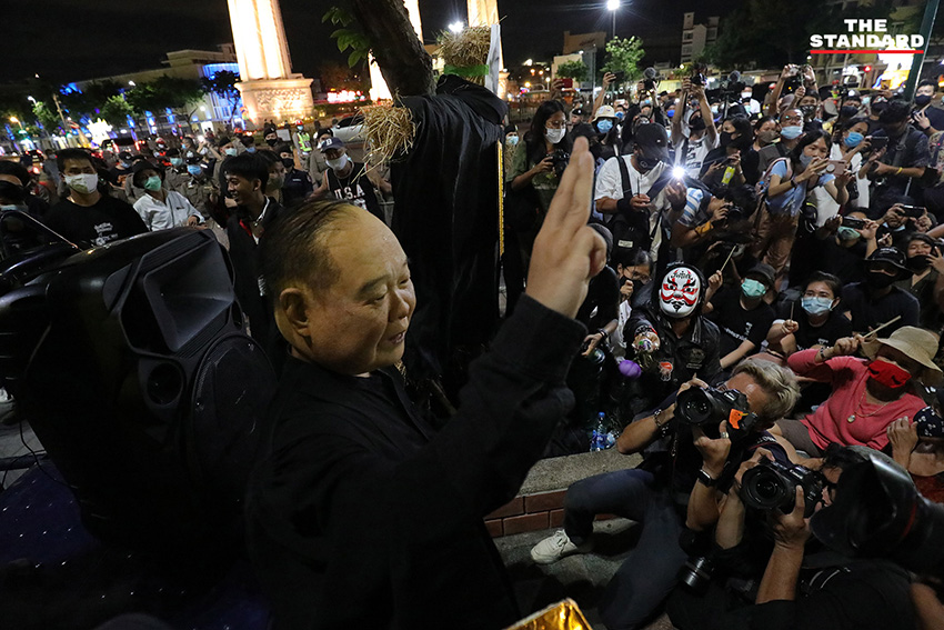 ก่อนที่ช่วงสุดท้ายจะมี ทนายอานนท์ นำภา ที่ขึ้นมาปราศรัยถึงบทบาทของสถาบันพระมหากษัตริย์ จากนั้นก็มีการให้ผุ้ชุมนุมนำไม้กายสิทธิ์ที่ชี้ไปที่พานของรัฐธรรมนูญซึ่งเปรียบเสมือนถ้วยอัคนี พร้อมเปล่งเสียงร่ายคาถา โดยก่อนการปิดเวที พิธีกรบนเวทีกล่าวว่า “อีกไม่นานจะมีการชุมนุมใหญ่” และปิดเวทีในเวลา 20.34 น.