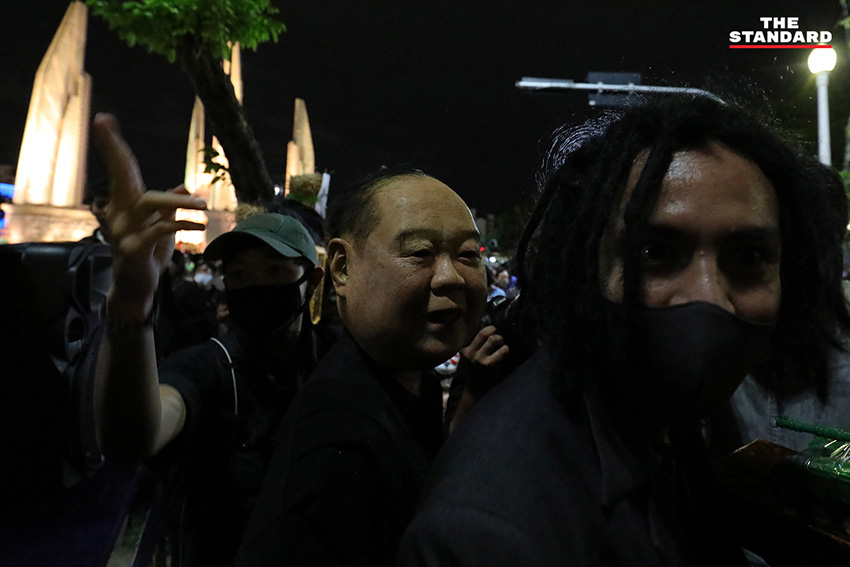จากนั้นก็มีแกนนำสลับกันปราศรัย กระทั่งเวลาประมาณ 19.34 น. มีผู้ชุมนุมรายหนึ่งแต่งกายในชุดพ่อมด พร้อมสวมหน้ากากคล้ายใบหน้าของ พล.อ. ประวิตร วงษ์สุวรรณ เดินมาจากทางด้านหลังของผู้ชุมนุมจนทุกคนหันไปมองพร้อมกับการถ่ายรูป กระทั่งผู้ชุมนุมรายดังกล่าวเดินมาหน้าเวที พร้อมกับการที่ให้ผู้สวมหน้ากากรายดังกล่าวชู 3 นิ้ว โดยที่พิธีกรบนเวทีสัมภาษณ์บุคคลดังกล่าว แต่บุคคลที่สวมหน้ากากดังกล่าวก็ตอบเพียงว่า “ไม่รู้” เรียกเสียงปรบมือจากผู้ชุมนุมได้เป็นจำนวนมาก ก่อนที่ผู้ชุมนุมจะเสกคาถาไล่บุคคลดังกล่าว