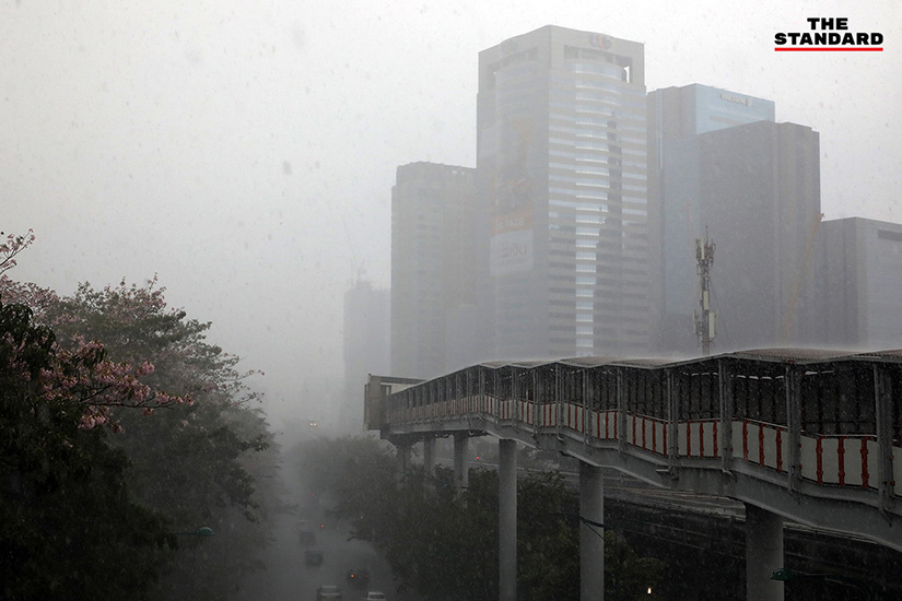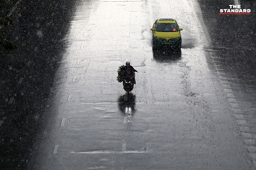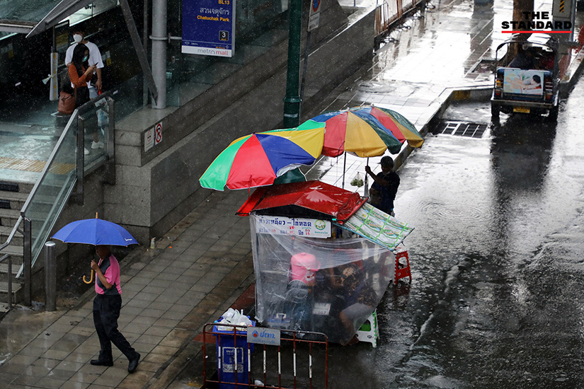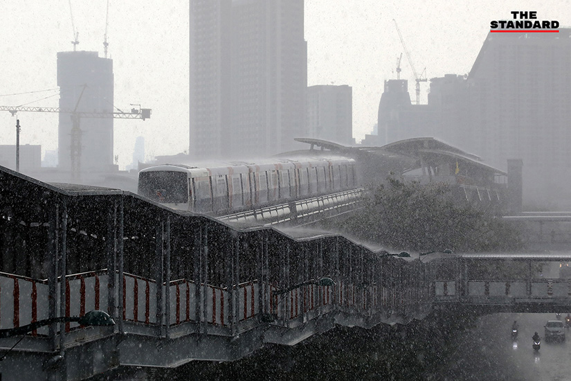 วันนี้ (11 กุมภาพันธ์) ช่างภาพ THE STANDARD แวะเก็บบรรยากาศ ‘ฝนตก’ บริเวณสวนจตุจักร อีกหนึ่งแลนด์มาร์กหลักที่เหล่ามนุษย์เงินเดือนจำนวนไม่น้อยใช้สัญจรไป-กลับระหว่างบ้านและที่ทำงานในทุกๆ วัน ซึ่งตั้งแต่ช่วงเวลา 13.00 น. ที่ผ่านมา พบว่าฝนยังคงกระหน่ำลงมาเรื่อยๆ ท่ามกลางบรรยากาศท้องฟ้ามืดครึ้มตลอดวัน