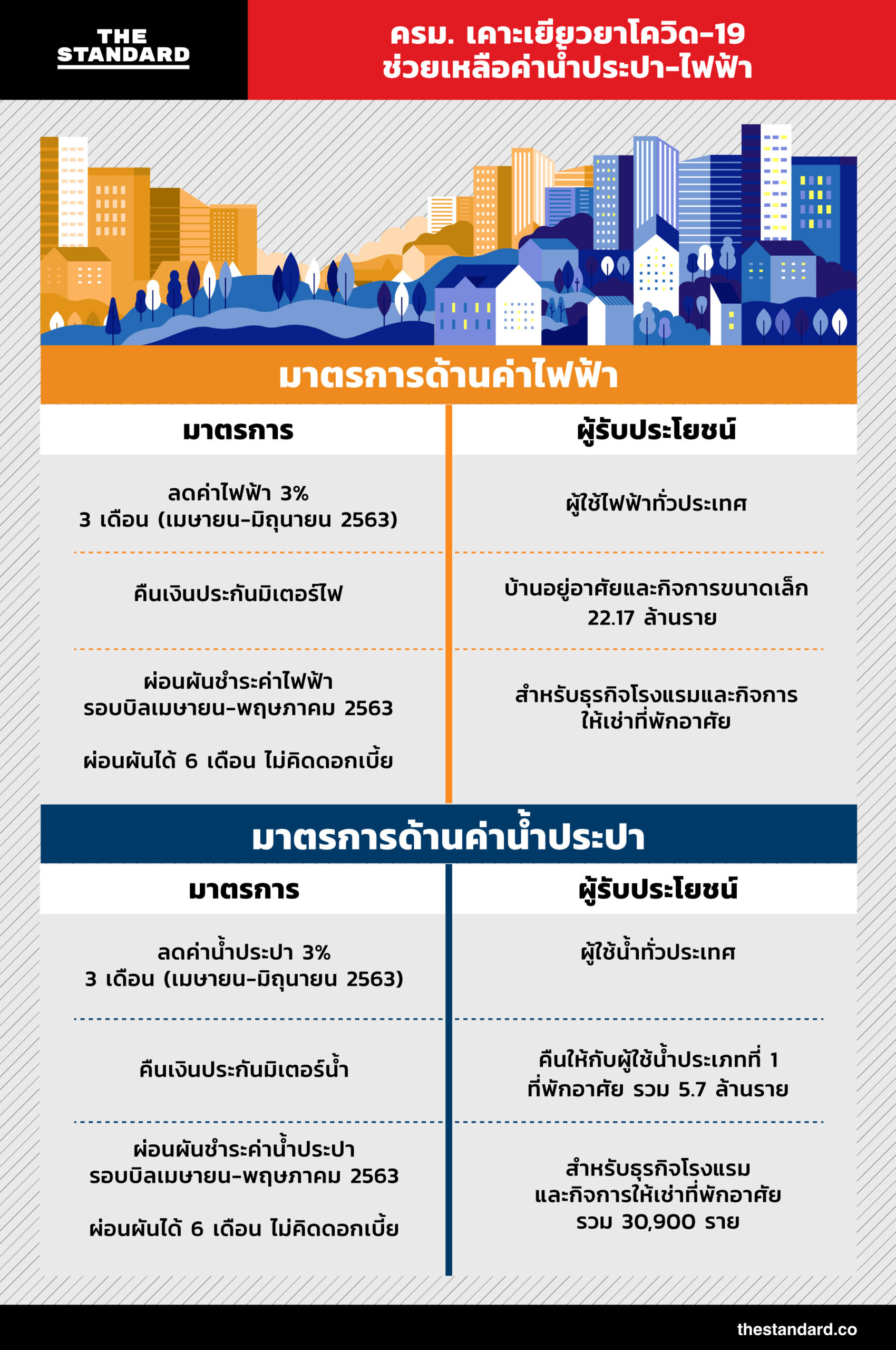 - คืนเงินประกันการใช้ไฟฟ้า (ประกันมิเตอร์ไฟ) โดยคืนให้กับบ้านอยู่อาศัยและกิจการขนาดเล็ก รวม 22.17 ล้านราย วงเงิน 1.3 หมื่นล้านบาท