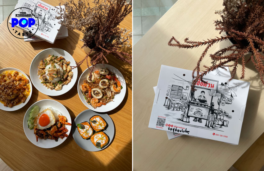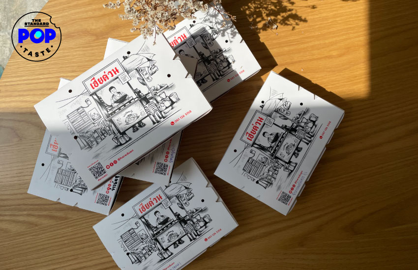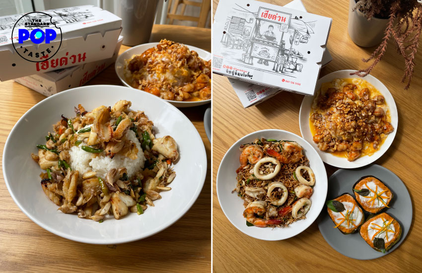 ในช่วงวิกฤตการณ์โควิด เมื่อรัฐออกกฎห้ามนั่งกินอาหารในร้านและเราหันมาพึ่งพาการเดลิเวอรีกันมากขึ้น ‘เฮียด่วน’ เป็นโปรเจกต์ร้านอาหารที่เกิดขึ้นเพื่อเป็นช่องทางรายได้ในตอนนั้น โดยออกแบบให้ไม่จำเป็นต้องมีหน้าร้าน และขายเดลิเวอรีเพียงอย่างเดียว