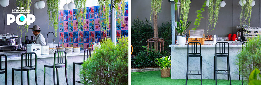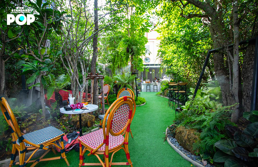 “ตอนที่พี่เรียนอยู่อังกฤษ เราอยู่ในแฟลตเล็กๆ มีครั้งหนึ่งที่นั่งทำการบ้านอยู่แล้วเราได้ยินเสียงปาร์ตี้มาจากด้านนอก พอเราเปิดหน้าต่างออกไป มันกลายเป็นภาพปาร์ตี้สวนหลังบ้านที่ครอบครัวมานั่งดื่ม นั่งชิล หัวเราะเฮฮา มีเด็กๆ วิ่งเล่น เรารู้สึกว่าเราอยากได้รับเชิญไปปาร์ตี้หลังบ้านแบบนั้นบ้าง พอโปรเจกต์นี้เริ่มขึ้น ภาพนี้มันกลับเข้ามาในหัวอีกครั้ง พี่คิดว่าถ้าตรงนี้มันไม่ใช่แค่บาร์แล้ว แต่มันเป็นเหมือนกับสวนหลังบ้านของตัวละครในจินตนาการสักคนที่บ้านนี้จัดปาร์ตี้ทุกวัน แต่คราวนี้ความแตกต่างของมันคือ ที่นี่ทุกคนได้รับเชิญหมด” คุณปืนเสริมเรื่องราวคอนเซปต์หลักๆ ของร้าน ที่ตอนนี้เปิดให้บริการช่วงบ่ายจนถึงหลังมื้อค่ำ และบรันช์ในช่วงวันหยุด ซึ่งในอนาคตบริเวณด้านในมีแผนที่จะทำโซนอินดอร์ รวมถึงแพลนบาร์บีคิวในสวน ที่จะทำให้พื้นที่ตรงนี้กลายเป็นคอมมูนิตี้แห่งใหม่ขึ้นมาจริงๆ