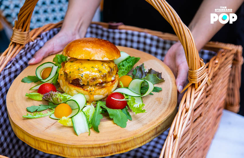 จานหลักที่แสนคอมฟอร์ตของที่นี่คือ Hide Park Burger (380 บาท) เบอร์เกอร์เนื้อแน่นที่คุณสามารถเลือกได้ระหว่างเนื้อ Australian Wagyu หรือหมูคุโรบูตะ ชุ่มซอส Bearnaise ทั้งหมดทั้งมวลแพ็กมาในขนมปังบริยอช รายล้อมด้วยผักสลัดและผักดอง