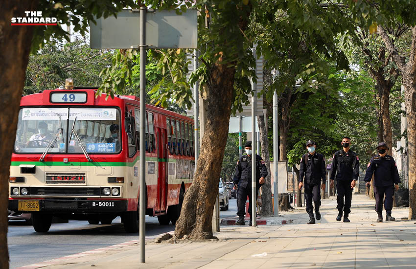 วันนี้ (19 กุมภาพันธ์) บรรยากาศการรักษาความปลอดภัยในช่วงการอภิปรายไม่ไว้วางใจบริเวณโดยรอบอาคารรัฐสภา แยกเกียกกาย หลังกลุ่มราษฎรซึ่งนำโดย ไมค์-ภาณุพงศ์ จาดนอก และ รุ้ง-ปนัสยา สิทธิจิรวัฒนกุล เตรียมจัดกิจกรรมต่อต้านรัฐบาล และสนับสนุนพรรคร่วมฝ่ายค้านในการลงคะแนนไม่ไว้วางใจนายกรัฐมนตรีและรัฐมนตรีรายบุคคล และกิจกรรม Mob Fest อภิปรายนอกสภาในช่วงเย็น ตั้งแต่เวลา 17.00 น.