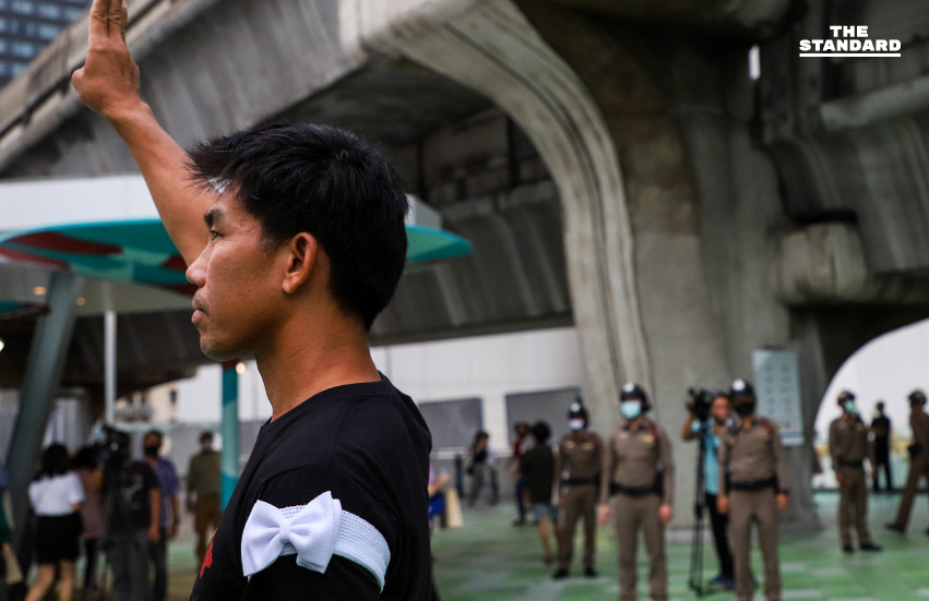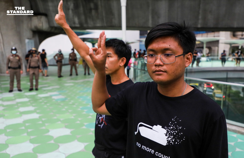 วันนี้ (22 สิงหาคม) เมื่อเวลา 18.00 น. ที่สกายวอล์ก เอ็มบีเค สี่แยกปทุมวัน กลุ่ม มศว คนรุ่นเปลี่ยน ได้จัดกิจกรรมชู 3 นิ้วไล่เผด็จการ เพื่อแสดงจุดยืนว่าเจ้าหน้าที่รัฐต้องหยุดคุกคามประชาชน นักเรียน นิสิต นักศึกษา เพื่อยืนหยัดถึง 3 ข้อเรียกร้องของคณะประชาชนปลดแอกที่ส่งถึงรัฐบาล สำหรับการจัดกิจกรรม มีการยืนตรงเคารพธงชาติ ชู 3 นิ้วพร้อมร้องเพลงชาติไปด้วย ก่อนที่จะแยกย้าย