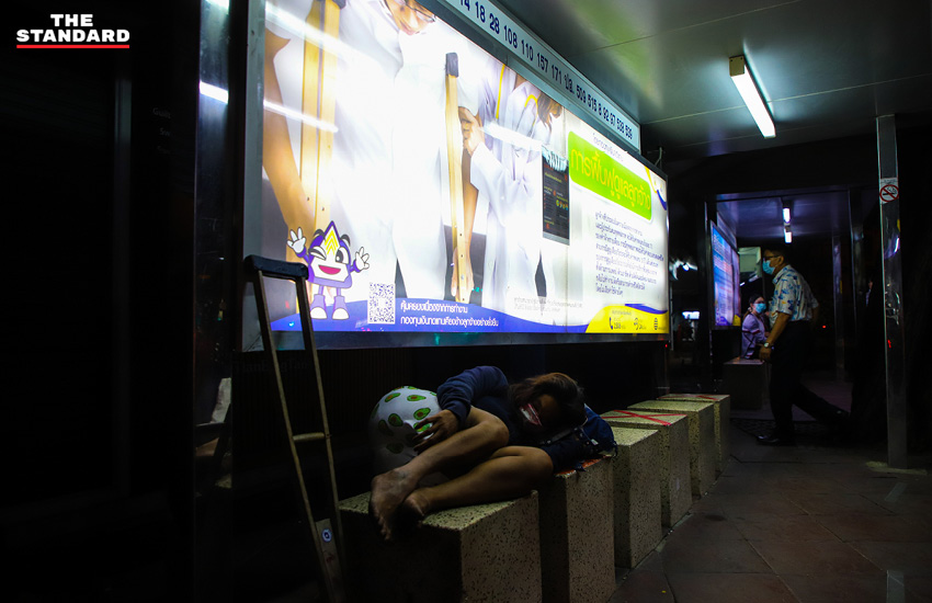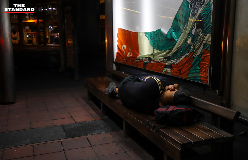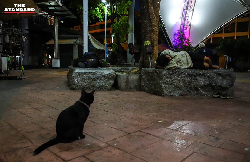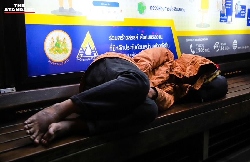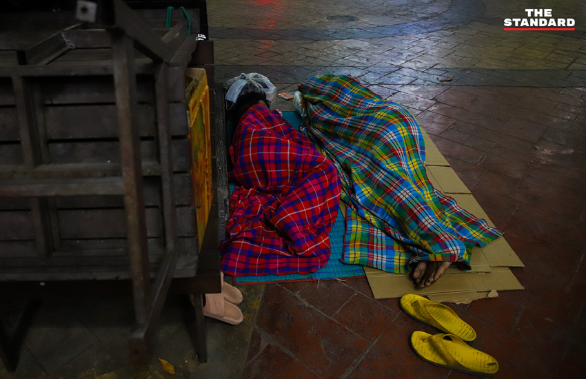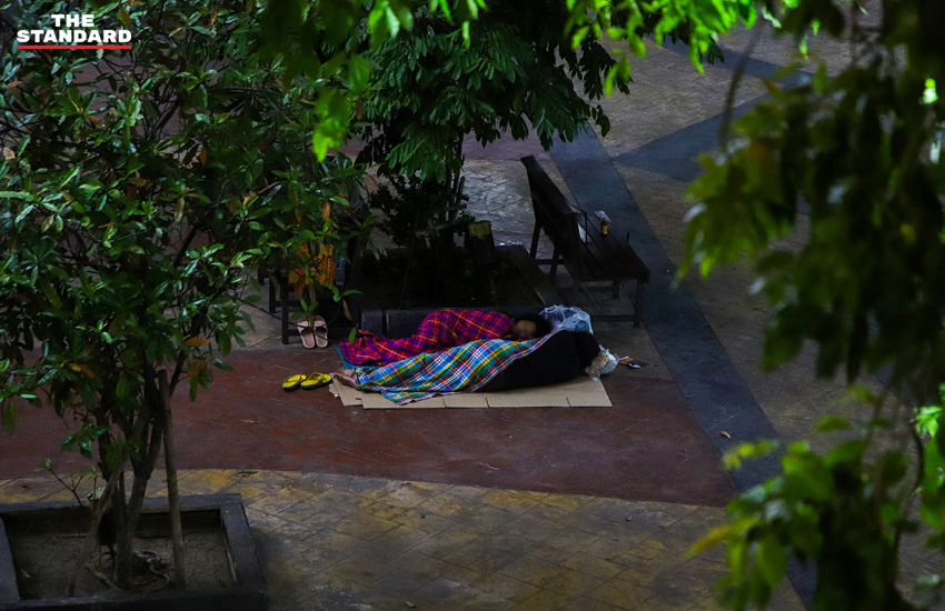 ผ้าห่มผืนบาง เสื้อกันหนาวตัวโปรด ประสานกับมือเพื่อรับไออุ่น และนอนขดตัว นี่คือบรรยากาศของอนุสาวรีย์ชัยสมรภูมิในยามเช้าตรู่ที่ช่างภาพ THE STANDARD ลงพื้นที่สำรวจ ซึ่งพบกับคนไร้บ้านที่อยู่บริเวณนี้เผชิญกับความหนาวที่ถาโถมมาในยามเช้าแบบนี้