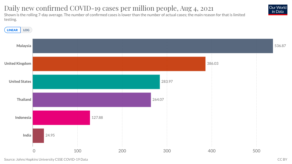- สถานการณ์โควิดในประเทศไทยอยู่ในภาวะวิกฤตในทุกมิติ ในขณะที่ พล.อ. ประยุทธ์ จันทร์โอชา นายกรัฐมนตรี ให้สัมภาษณ์เมื่อวันที่ 29 กรกฎาคม ถึงสถานการณ์ในเวลานี้ว่า แม้จะเห็นตัวเลขของประเทศไทยที่ดูน่าตกใจ แต่อยากให้ดูสถิติของประเทศเพื่อนบ้านและต่างประเทศเช่นกัน