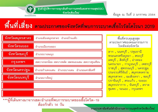 สำหรับจังหวัดอื่นๆ ควรติดตามการประกาศจากเพจสำนักงานสาธารณสุขจังหวัด หรือสำนักประชาสัมพันธ์จังหวัดนั้นๆ