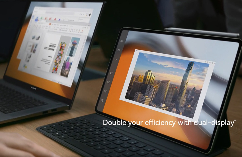 ฟีเจอร์ด้านซอฟต์แวร์ที่มาช่วยเพิ่มประสิทธิภาพการทำงานได้ดียิ่งขึ้น โดยเฉพาะคนที่เป็นสาย Multi-tasker เพราะสามารถทำงานรวมกันระหว่างคอมพิวเตอร์แล็ปท็อปและแท็บเล็ตได้ทันทีผ่านฟีเจอร์ ‘Huawei Multi-Screen Collaboration with Laptop’ ซึ่งสามารถใช้งานได้ 3 โหมด ได้แก่