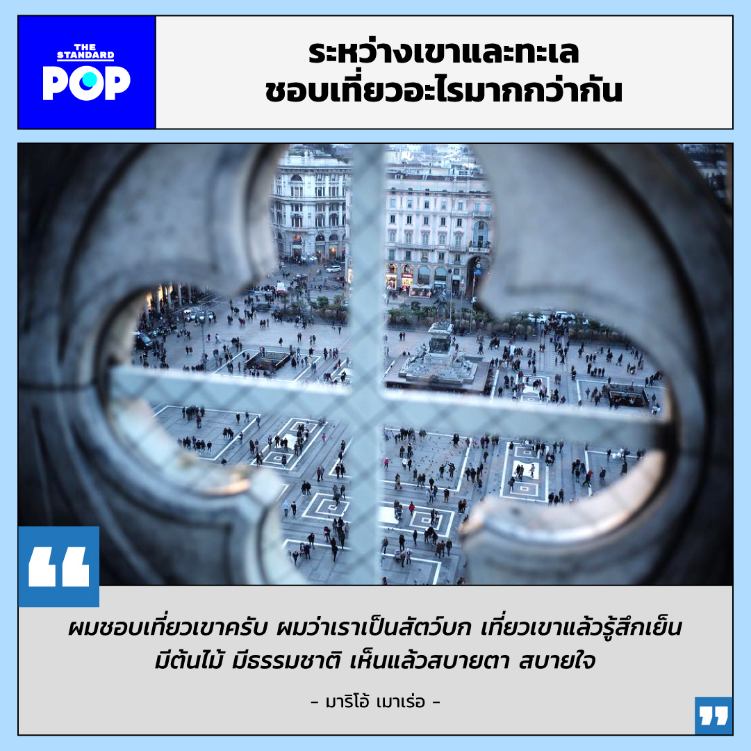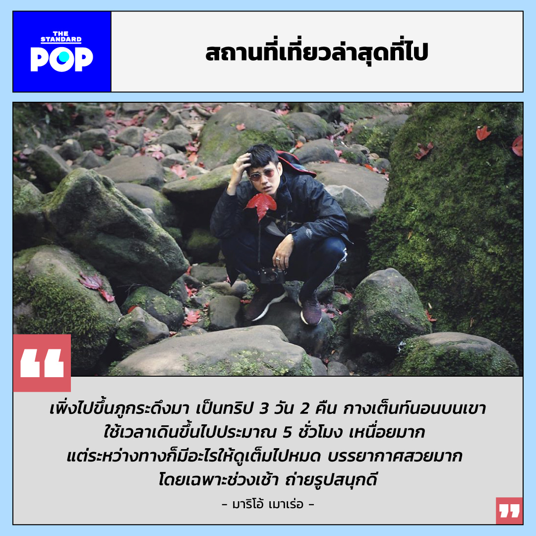 I Travel Like This คอลัมน์ใหม่ของ THE STANDARD POP หมวด Travel ที่ชวนดารา นักแสดง อินฟลูเอนเซอร์ หรือบุคคลมีชื่อในวงการต่างๆ มาเปิดเผยสไตล์การเดินทางว่า ‘ฉันชอบเที่ยวแบบนี้นะ’ ผ่านบทสัมภาษณ์สั้นๆ ง่ายๆ แต่แสดงตัวตน ซึ่งเราขอประเดิมเปิดคอลัมน์ ด้วยบทสนทนาของหนุ่มมาริโอ้ เมาเร่อ ชายหนุ่มผู้ชื่นชอบการเที่ยวเขา นอนเต็นท์ และรักโรดทริปเป็นที่สุด